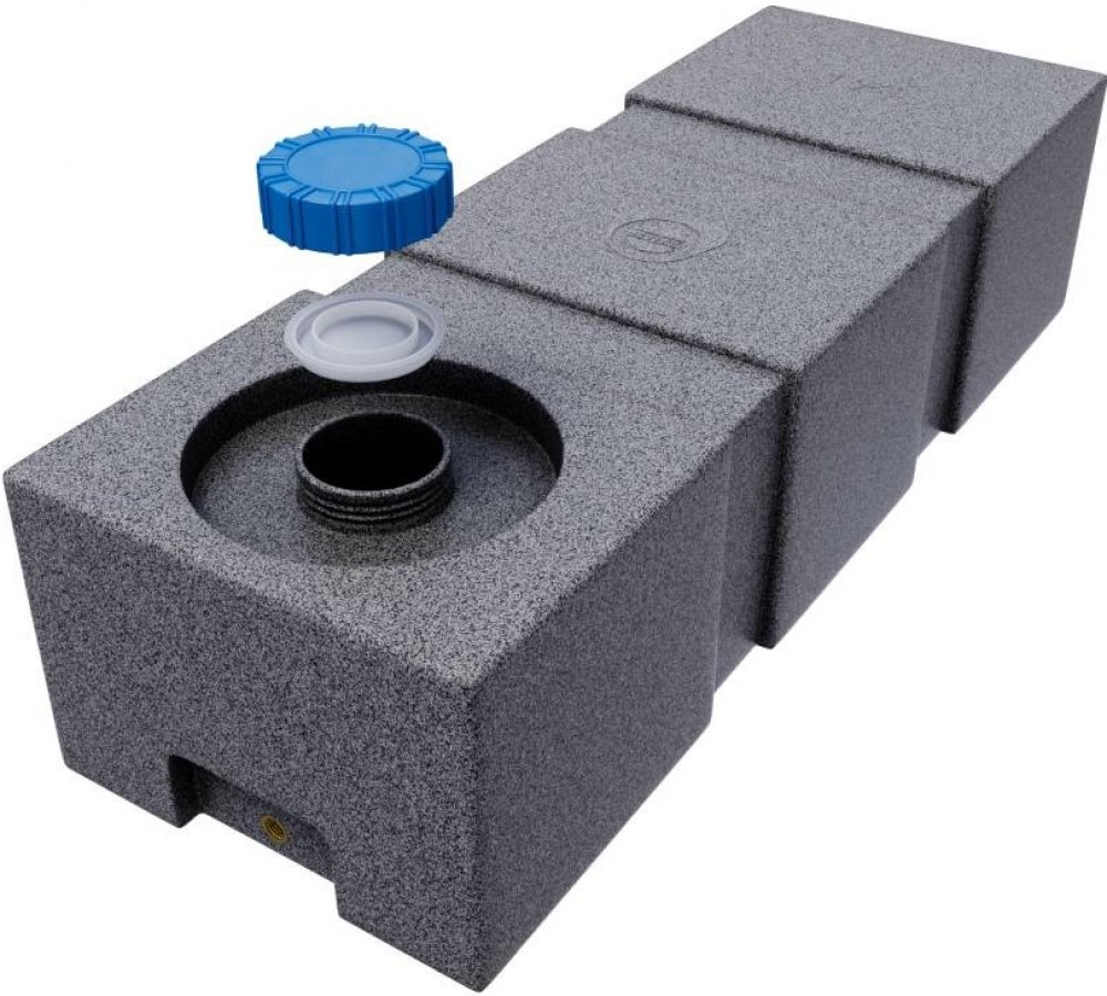Nádoba je certifikována pro kontakt s pitnou vodou a je vyrobena z vysoce kvalitního polyethylenu, který je odolný vůči UV záření a širokému teplotnímu rozsahu (-40°C do +60°C). Na spodní straně nádoby je závit o průměru ¾ palce pro připojení.