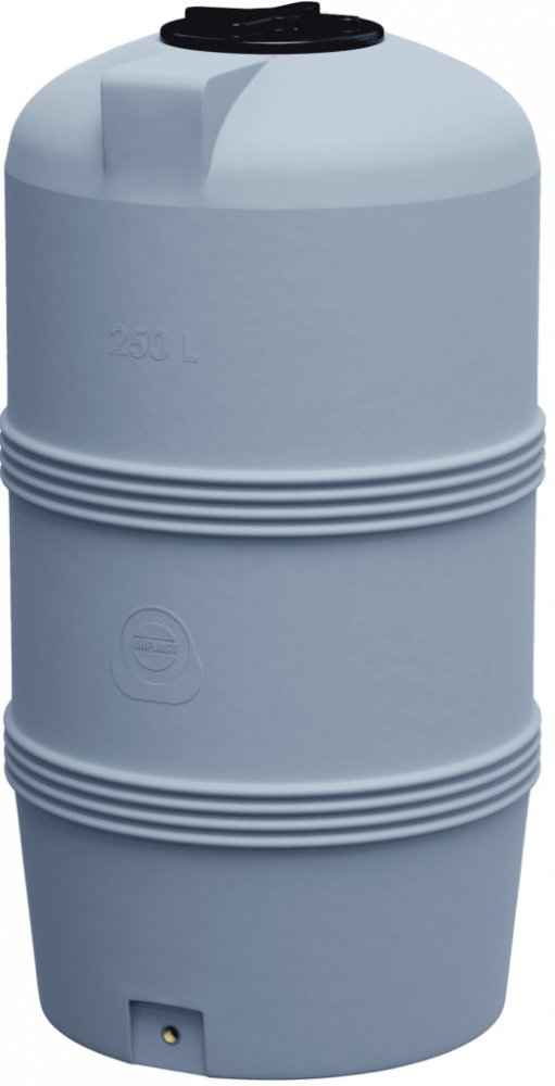 Vertikální polyethylenová nádrž UHPlast V-250 o objemu 250 litrů je ideální pro bezpečné a dlouhodobé skladování vody, potravin i chemických roztoků. Nádrž má výšku 109,1 cm, průměr 60 cm a díky osmi výztuhám (čtyři nahoře a čtyři dole) vyniká vysokou pevností a stabilitou. Díky českému hygienickému certifikátu Atest CZ je nádoba vhodná pro styk s pitnou vodou a splňuje normu ISO kvality. Dostupná je v několika barevných variantách – bílá, zelená, šedá a modrá. Ideální pro stacionární skladování vody a dalších potravin
