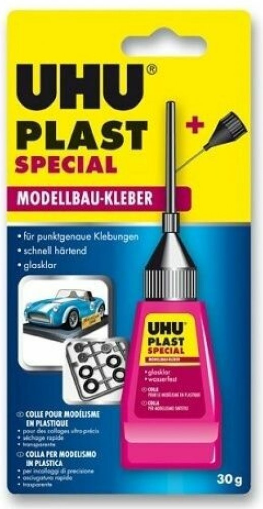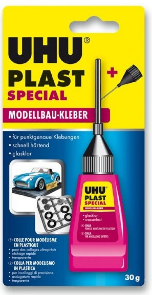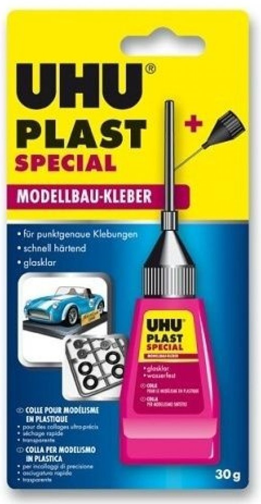 Mimořádně kvalitní, čiré, rychleschnoucí, vodovzdorné, transparentní lepidlo určené pro lepení plastových modelů. Dosahuje vysokých pevností rozpuštěním povrchů plastů (tzv. studené svařování). Úzký aplikátor pro lepení štěrbin.