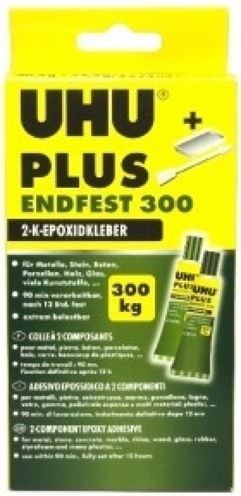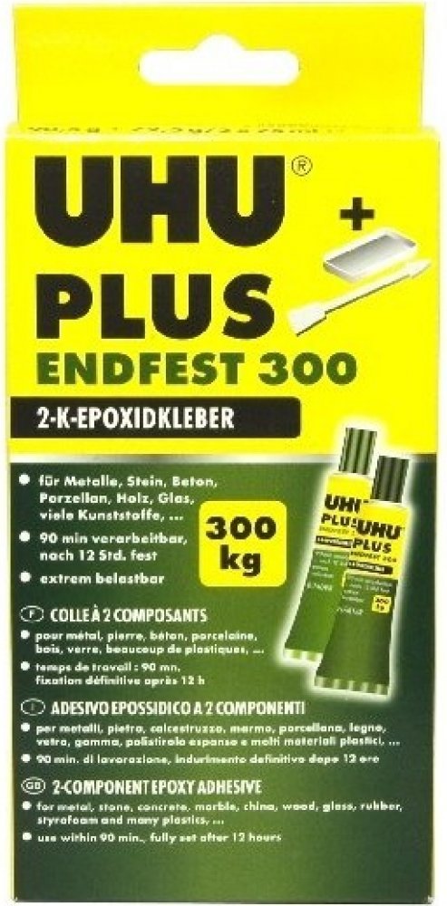 * Vysokopevnostní dvousložkové epoxidové lepidlo * Vynikající kvalita tohoto vysokopevnostního dvousložkového epoxidového lepidla zajišťuje pevné lepení a opravy s pevností 300 kg/cm2. * Lepidlo odolává vlhkosti, olejům, rozpouštědlům, ředěným kyselinám a louhům. Má vysokou tepelnou odolnost od -40°C do +100°C. Po vytvrzení se dá vrtat a přetírat. ➤ ROZSAH POUŽITÍ: * Je vhodné pro lepení kovů, dřeva, dřevotřísky, termosetů, tvrdého PVC, laminátů, keramiky, porcelánu, skla, betonu, kamene, mramoru, gumy, pěnového polystyrenu aj. a to jak mezi sebou, tak i navzájem. Není vhodné pro lepení PP, PE, teflonu a silikonu. ➤ NÁVOD K POUŽITÍ: * Lepené části musí být čisté, suché a odmaštěné. Vytlačte plnidlo a tvrdidlo v objemovém poměru 1 : 1 (dva stejné proužky) a řádně promíchejte. Zpracovatelnost lepidla je 90 minut při pokojové teplotě. * Lepidlo naneste jednostranně, u drsných a porézních materiálů oboustranně, oba povrchy přitlačte k sobě a zafixujte (pomocí svorek nebo pásky). * Konce tub řádně očistěte a uzavřete. Čas vytvrzování a konečná funkční pevnost závisí na přivedené teplotě – viz tabulka. Minimální pracovní teplota je 15°C. Skladujte v suchu a chladu. ➤ Tabulka pevnosti v závislosti na teplotě a čase: * Teplota [°C] Čas Pevnost [kg/cm2] 20 ... 12 hodin ... 120 40 ... 3 hodiny ... 150 70 ... 45 minut ... 200 100 ... 10 minut ... 250 180 ... 5 minut ... 300