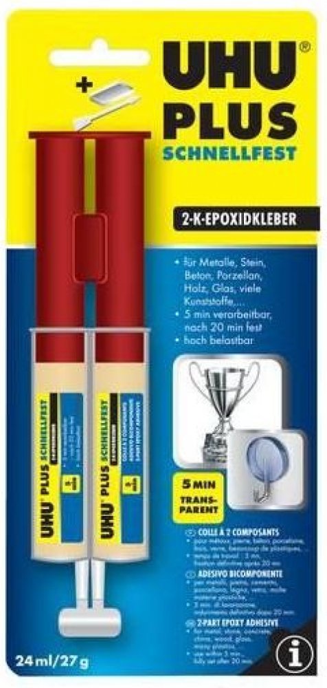 Vynikající kvalita tohoto rychleschnoucího epoxidového lepidla zajišťuje rychlé, čiré, pevné lepení a opravy s pevností 190kg/cm². Lepidlo odolává vlhkosti, olejům, rozpouštědlům, ředěným kyselinám a louhům. Má vysokou tepelnou odolnost -20°C do +100°C.