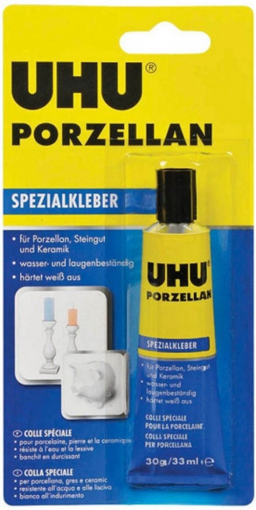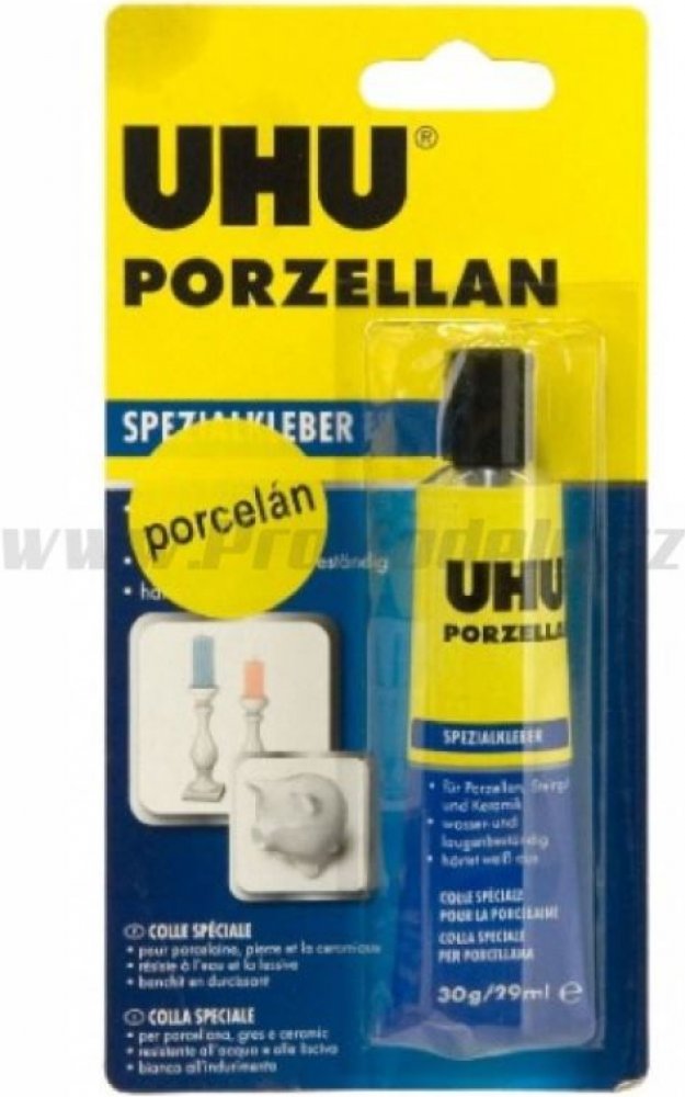 Speciální kvalitní bílé lepidlo s vysokou pevností určené pro lepení a opravy porcelánu a keramiky. Odolává horké vodě, čistícím prostředkům, ředěným louhům a teplotám od -30 °C do +80 °C. Lepidlo lze použít na lepení a opravy porcelánu, keramiky, kameniny a mramoru. vysoká pevnost lepidla na opravu porcelánu a keramiky odolává horké vodě Návod k použití: Lepidlo by mělo být aplikováno na obě strany poškozených míst a ponecháno uschnout. Poté znovu naneste lepidlo na jedné straně a okamžitě přitlačte díly k sobě. Konečná síla vazby je dosažitelná po 24 hodinách. Před použitím opláchněte předměty, jako je nádobí horkou vodou. Pro odstranění zbytků a skvrn lepidla použijte aceton. Obsahuje těkavá, vysoce hořlavá rozpouštědla. Proto je třeba přijmout vhodná preventivní opatření při jeho používání a skladování. Pokud lepidlo používá na velké ploše, je třeba místnost dobře větrat.
