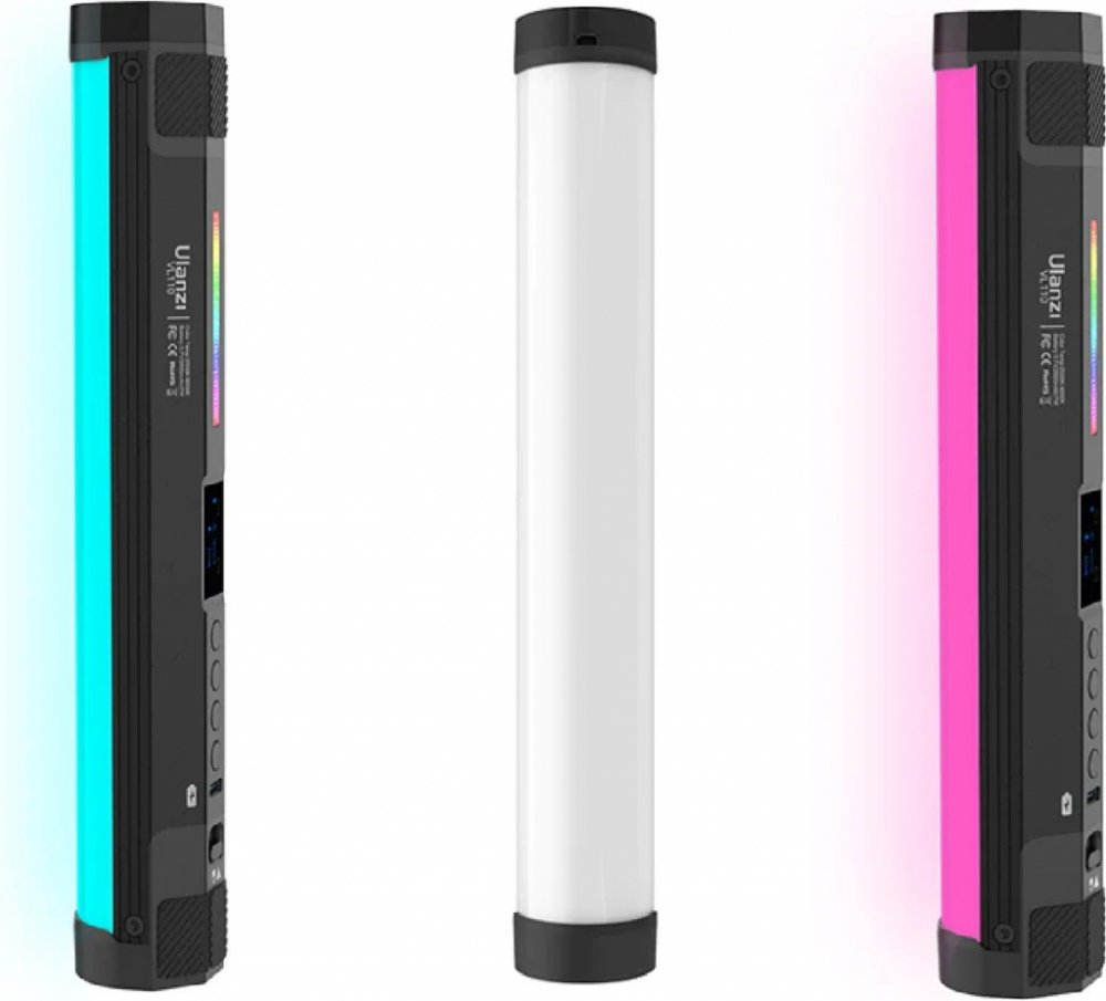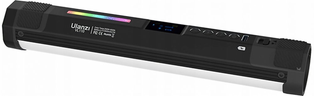 Ulanzi VL110 – RGB, WB (2500 K – 9000 K) je kompaktní LED žárovka s výrazným tvarem trubice. Jednotka je ideální pro produktové fotografie, portréty, vlogy, hudební videa, živá vysílání a malování světlem (technika "malování světlem"). Tento model nabízí nastavitelný výkon a teplotu chromatičnosti (2500 K – 9000 K) a možnost získání barevného světla v rámci barevného prostoru HSI. K dispozici je také 20 speciálních efektů. Díky použití speciálních bajonetů zkombinujete několik světel Ulanzi VL110 – RGB do jednoho dlouhého světelného meče. Při maximálním výkonu zařízení můžete počítat až s 1,5 h nepřetržitého provozu. Lampu budete nabíjet přes port USB-C pomocí powerbanky nebo nabíječky smartphonu.