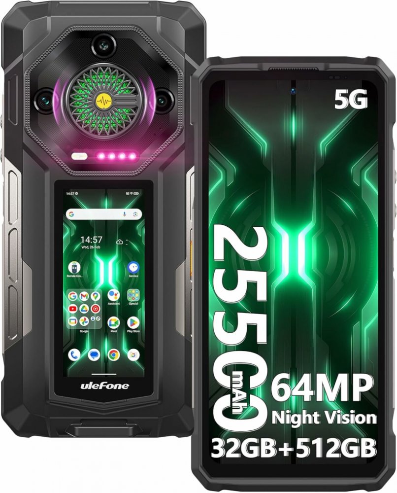 Mobilní telefon UleFone Armor 33 Pro Phantom BlackUleFone Armor 33 Pro je odolný chytrý telefon nové generace – se dvěma obrazovkami, obří baterií 25 500 mAh a výbavou, která obstojí v práci, na cestách i v náročném terénu. Zadní displej zrychluje každodenní ovládání, špičkový čip Dimensity 7300X se stará o plynulost a trojitý fotoaparát včetně nočního vidění pořídí jisté záběry ve dne i v noci. 6...