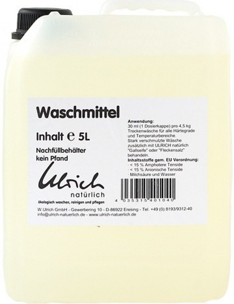 Tekutý přípravek na praní ULRICH obsahuje změkčovač a je vhodný pro všechny typy praní a stupně tvrdosti vody. Obsahuje praní aktivující látky z kokosového oleje, rostlinné mazlavé mýdlo a pravotočivou kyselinu mléčnou, která chrání před usazováním vodního kamene a vyrovnává hodnotu pH.