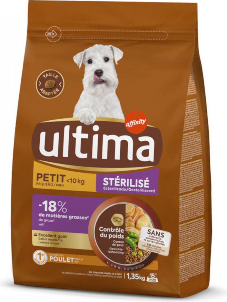 Granule Ultima Dog Mini kuřecí pro sterilizované psy bylo vyvinuto speciálně pro potřeby sterilizovaných psů malých plemen. Tyto granule nabízí vyváženou výživu s nízkým obsahem tuku, která podporuje regulaci hmotnosti vašeho čtyřnohého přítele. Kuřecí maso jako hlavní složka poskytuje lahodnou chuť, kterou si váš pes zamiluje. Ultima Dog Mini kuřecí pro sterilizované psy obsahuje také hrášek, kte...