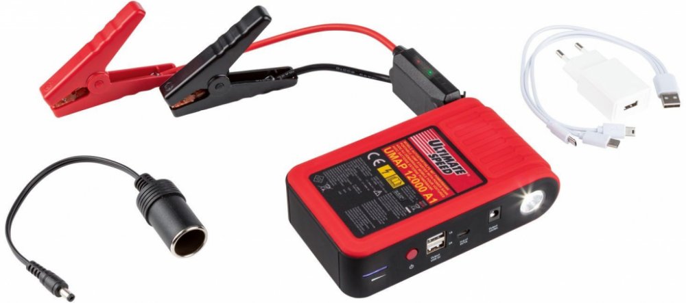 ULTIMATE SPEED Startovací zdroj s powerbankou UMAP 12000 B2 Startovací zdroj pro automobily a výkonná powerbanka 2 v 1 Ochrana proti přepólování, zkratu a přetížení Ochrana proti jiskrám Nejmodernější Li-Ion technologie s výkonným LiFePO4 akumulátorem Vysoký elektronický stupeň účinnosti – až do 90 % použitelné kapacity akumulátoru Mimořádně dlouhá životnost díky vysoké cyklické odolnosti Velmi ní...