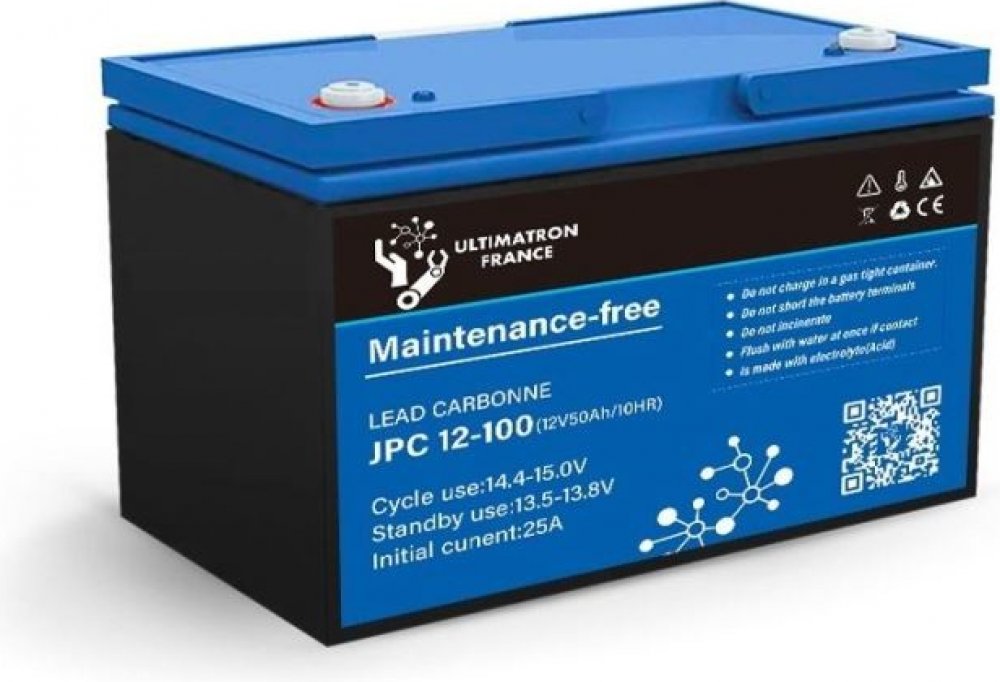 Olověno uhlíkové baterie jsou novým druhem olověných baterií s vázaným kyselým elektrolytem stejně jako AGM baterie. Olověno uhlíkové baterie mají lepší výkon při částečném vybíjení a mnohem delší cyklickou životnost oproti běžným AGM/GEL olověným bateriím. Negativní deska baterie obsahuje směs olova s uhlíkem. Tím se dosahuje snížení sulfatace a delší životnosti negativní desky při cyklickém namáhání.Výhody:Nižší sulfatace při částečném vybití/nabitíNižší nabíjecí napětí a proto i vyšší účinnost a menší koroze negativní deskyVyšší životnost baterie**Specifikace:**Označení: JPC12–200Nominální napětí baterie: 12VNominální kapacita: 200AhMaximální vybíjecí proud: 2400S (5s)Maximální nabíjecí proud: 60AC10: 200Ah (10hod)C3: 163Ah (3hod)C1: 132Ah (1hod)Doporučené nabíjecí napětí (12V): 13,8-14,1VDoporučené udržovací napětí (12V): 13,5 – 13,8VDoporučený nabíjecí proud: do 0,25C (25A)Vnitřní odpor 12V baterie: max. 5mOhmCyklická životnost při 80% DoD:1500 cyklůCyklická životnost při 50% DoD: 2800 cyklůCyklická životnost při 40% DoD: 3600 cyklůRozměry: 522×222×240mmVáha baterie: 62kg**POZOR – pouze osobní odběr nebo paletová doprava. Standardní přeprava není možná.**