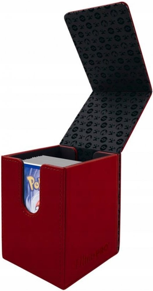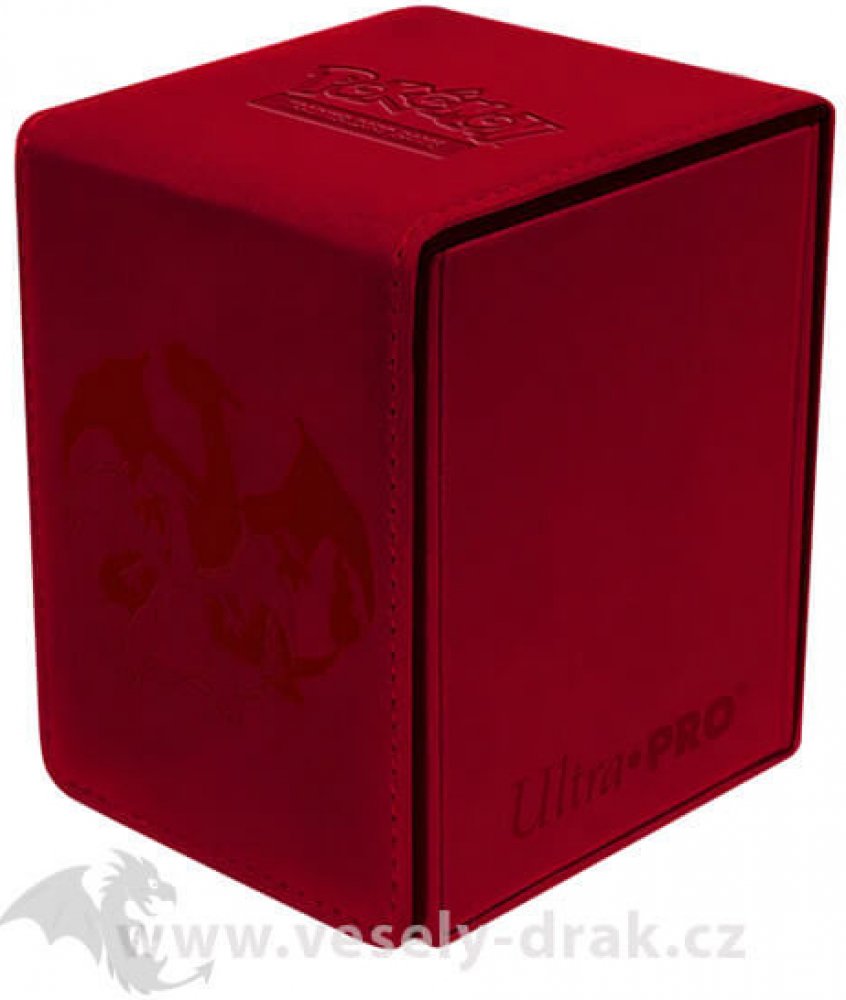 Prémiová koženková, červená krabička na karty s motivem foilové siluety ohnivého Pokémona Charizarda (UltraPro Pokémon Elite Series Charizard Alcove Flip Deck Box). Krabička je určená pro náročnější sběratele, či hráče. Mějte svůj balíček jako v bavlnce!