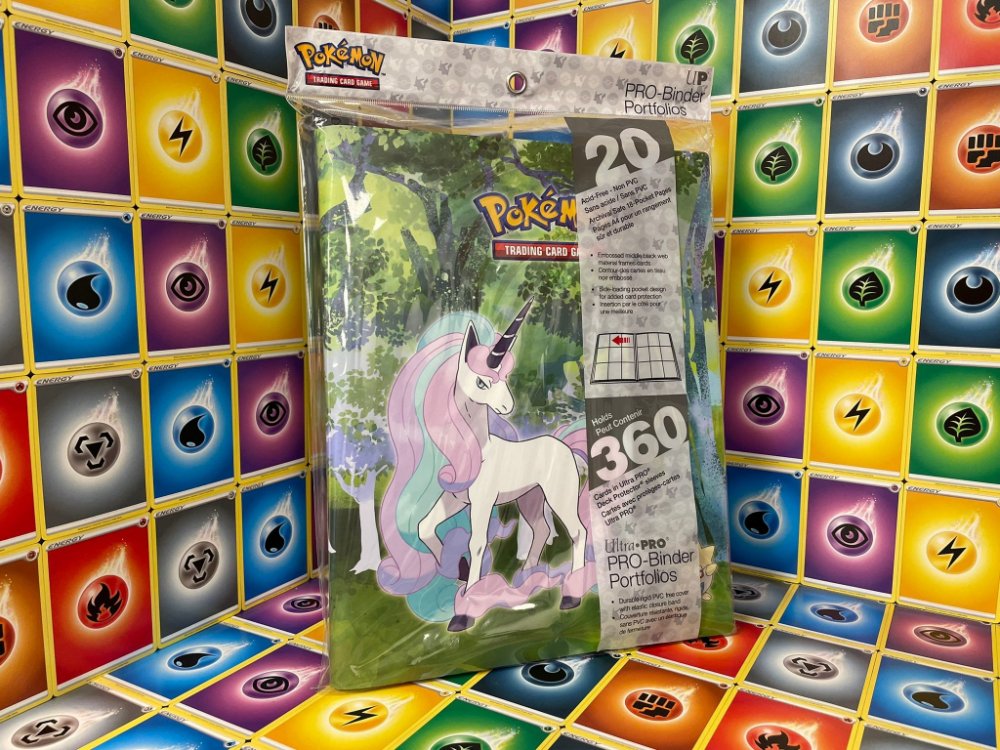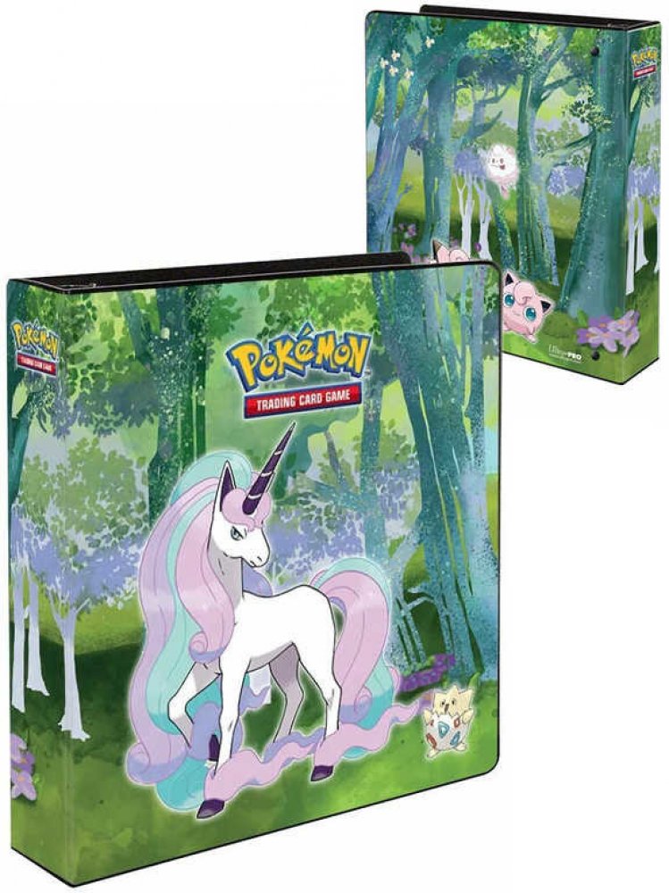 Stylové sběratelské album až na 360 karet Pokémon Gallery Series Enchanted Glade s motivem oblíbeného Pokémona Galarian Rapidash.