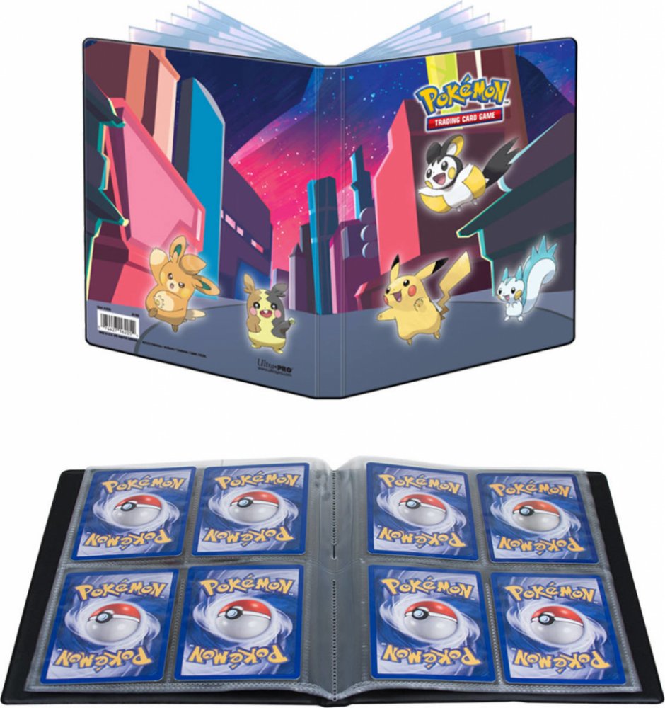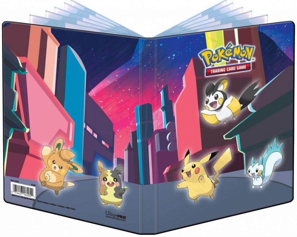Krásné sběratelské album Ultra Pro Gallery Series menší velikosti A5, na sběratelské karty Pokémon, s motivem Shimmering Skyline (Pikachu, Pawmot, Morpeko, Emolga, Pachirisu). Album pojme až 84 karet.