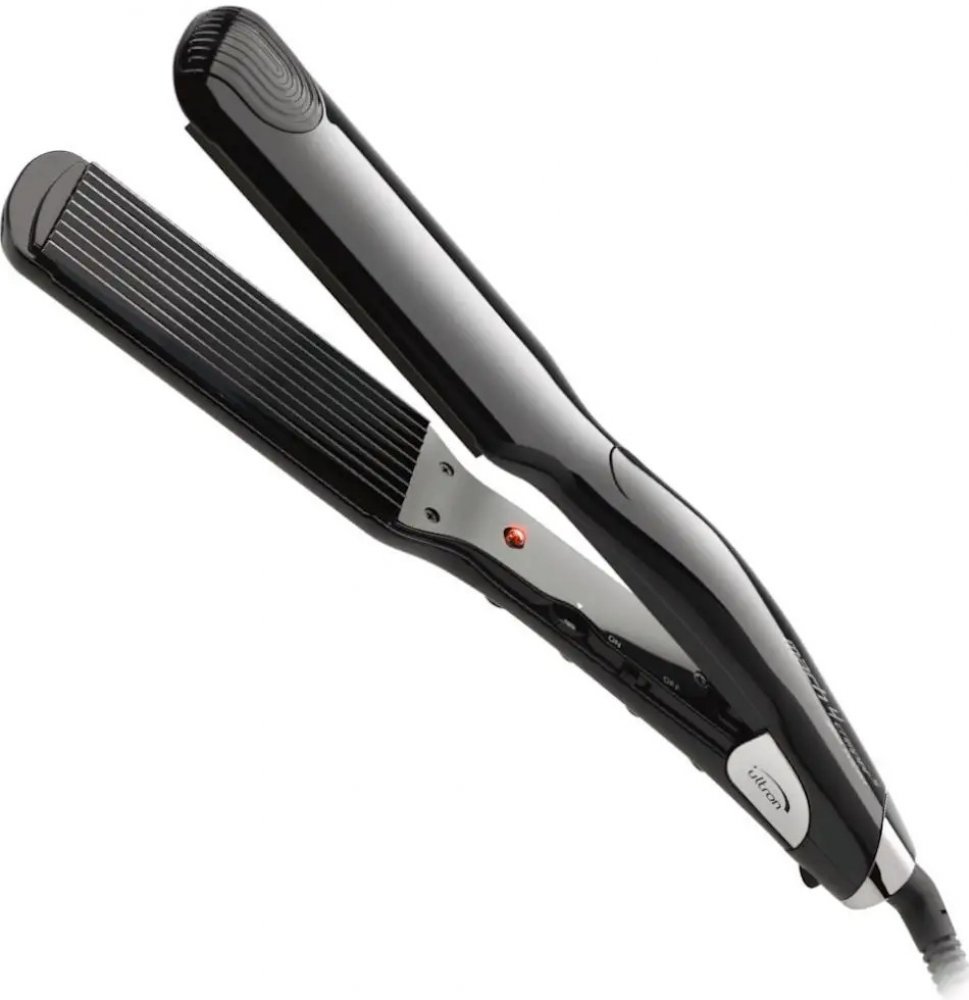 Luxusní krepovací kleště na vlasy Ultron Ila Ceramic Crimper ze zvlněným povrchem. Určená pro tvorbu malých vlnek. Extra dlouhé a velké keramické pláty o rozměrech 45 × 110 mm.