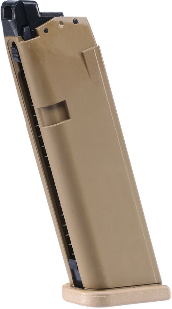 Zásobník Airsoft Glock 19X GAS od Umarex Tento náhradní zásobník je určen pro airsoftovou zbraň Glock 19X poháněnou plynem Green Gas a je navržen s důrazem na snadné plnění a spolehlivé podávání kuliček, což minimalizuje riziko zaseknutí během střelby. Zásobník pojme až 22 plastových BB kuliček o průměru 6 mm.
