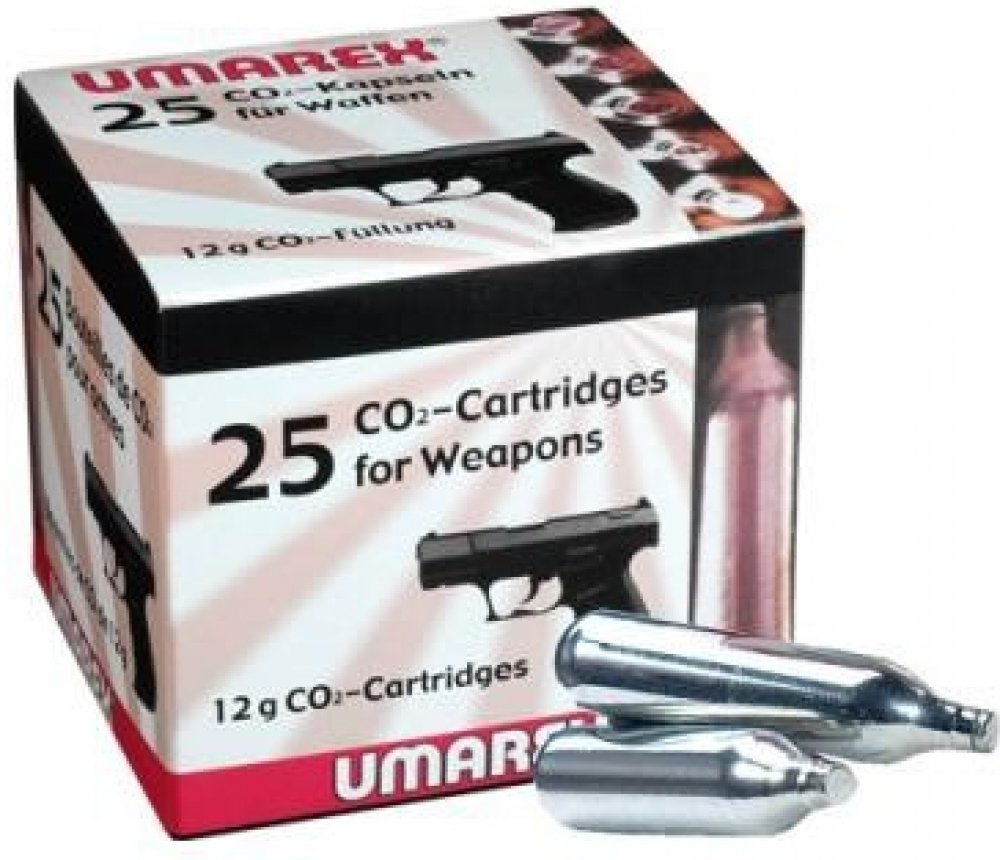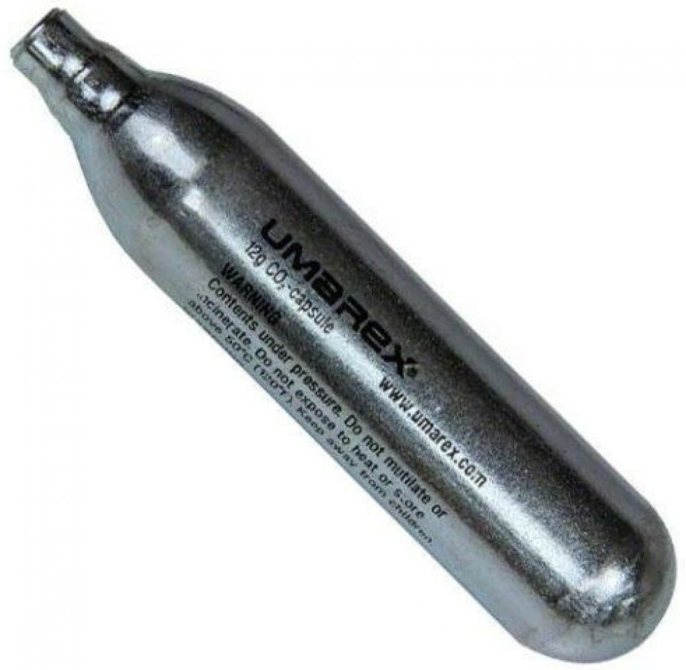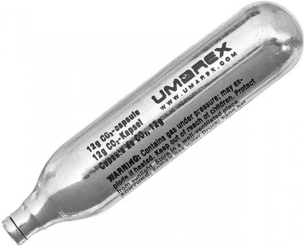 CO2 bombička 12 g, 1ks, Umarex Bombička se prodává jako jednotlivý kus a je určená pro pohon vzduchovek fungujících na 12 gramové bombičky CO2. Bombička je určená na jedno použití a nelze jí plnit. UPOZORNĚNÍ Bombičku je potřeba vždy důkladně vystřílet a nenechávat jí ve zbrani dlouhodobě. Pokud se pokusíte odšroubovat bombiček ve které je stále náplň, plyn rychle vysyčí a může způsobit omrzliny nebo poškodit vaši zbraň. Stejně tak je dobré nenechávat stále neplněnou bombičku dlouhodobě, jinak si snižujete životnost těsnících kroužků a ventilu zbraně. Vlastnosti bombičky CO2 12 g, Umarex Bombička je určena pro vzuchové pistole s pohonem střely CO2. Náplň plynu 12 g. Bombička se našroubuje na trn ve zbrani, který propíchne hrdlo. Počet výstřelů záleží na modelu vzduchovky. Bombička je na jedno použití a nelze ji plnit.