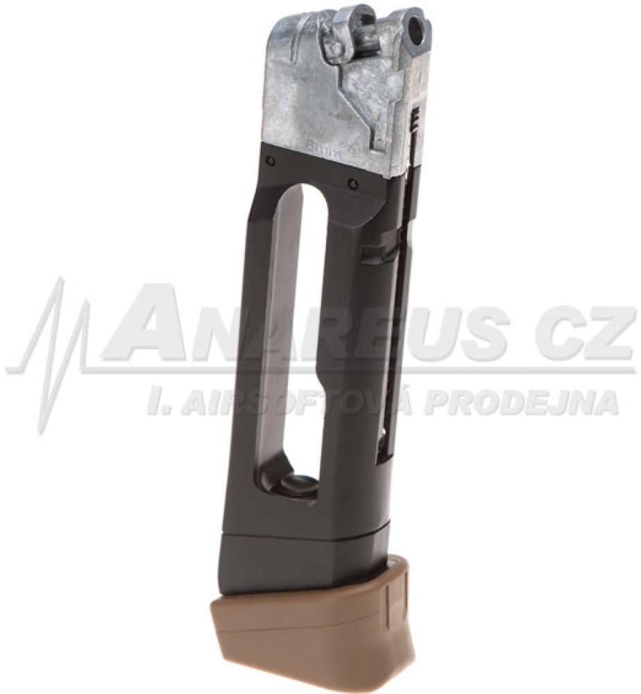 Přepouštěcí mechanismus zásobníku a těsnění je konstruováno s důrazem na spolehlivost, což zajišťuje stabilní výkon pistole a minimalizuje riziko ucházení plynu. Bezpečné upevnění pomocí zámku pro záchyt zásobníku zajišťuje stabilitu zásobníku během používání a snižuje riziko nechtěného vypadnutí nebo pohybu během akce.
