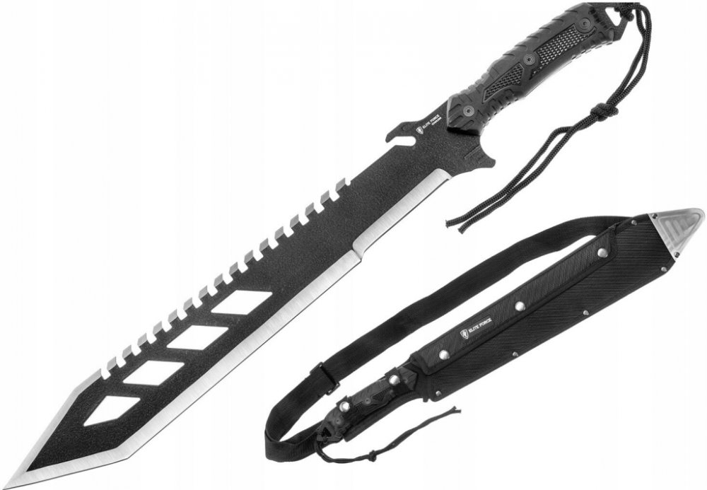 Mačeta je dodávána s kvalitním nylonovým pouzdrem s poutkem pro zavěšení na opasek. Nastavitelný popruh pro přenos okolo trupu a na rameni