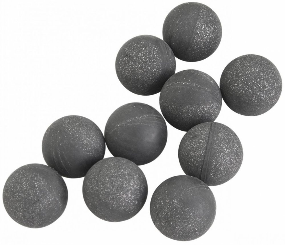 Tvrdé kaučukové kuličky s ocelovými pilinami pro zvýšení tvrdosti a účinnosti při obranné střelbě, hmotnost kuličky 2,6g.