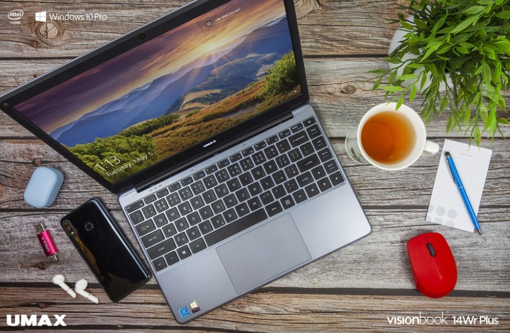 UMAX VisionBook 14Wr Plus je cenově dostupný a kompaktní notebook s čtyřjádrovým procesorem Intel Celeron N4120 (Gemini Lake), 4GB LPDDR4 RAM, 64GB EMMC úložištěm, hmotností pouze 1,3 kg a dlouhou výdrží na baterii. Nabízí velký 14,1" Full HD IPS displej s kvalitním obrazem pro práci a zábavu. Pro připojení externích zařízení je osazen dvěma USB porty i Type-C portem. Notebook lze připojit k externímu monitoru nebo HD televizi pomocí mini HDMI portu.