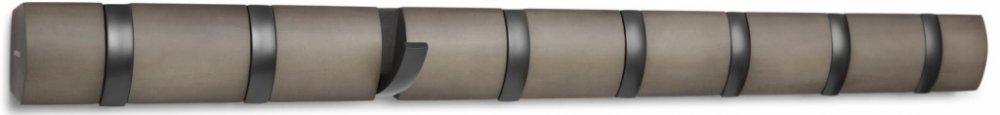 Šedý věšák na oblečení Umbra Flip je masivní, pevně konstruovaná lišta s pěti zlatými a výsuvnými háčky. Je vyroben z plastu a jasanového dřeva. Pokud háček nepotřebujete, jedním pohybem jej sklopíte nahoru. Nenechte se však zmást jeho kompaktním vzhledem, protože Flip pojme překvapivě velké množství předmětů, takže je ideálním místem pro zavěšení kabátů, šál, tašek a dalších věcí pro vás, vaši ro...