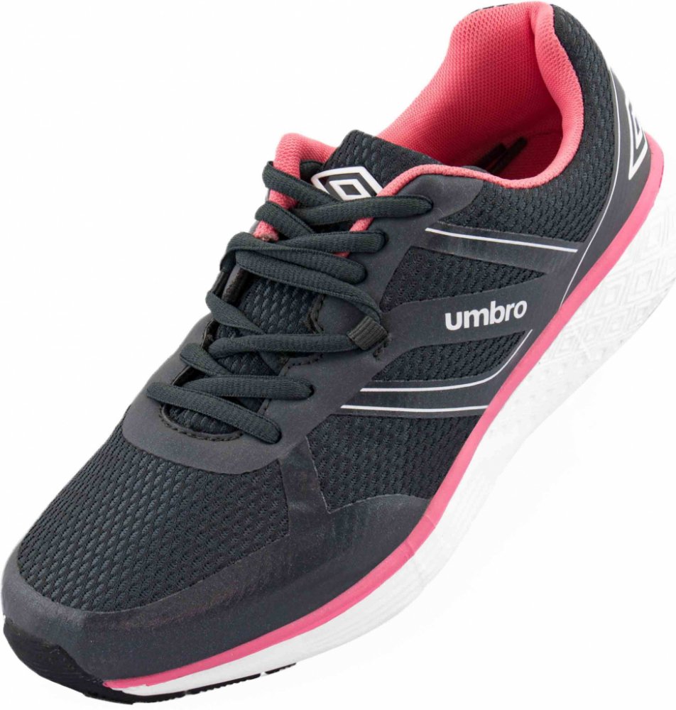 Univerzální odlehčená dámská obuv Umbro s pryžovou podrážkou pouze v nejvíce zatížených oblastech Parádní model dámské sportovně laděné obuvi nižšího dropu představuje výbornou volbu pro trénink rozličných sportovních aktivit, stejně tak jako originálně pojaté boty pro každodenní nošení. Dámská obuv Umbro Enim má precizně zpracovaný svršek, který kombinuje bezešvé provedení husté a výborně prodyšné síťoviny v kombinaci se speciálně tvarovanými zpevňujícími segmenty z ultralehkého termoplastu napojeného na systém šněrování se specifickým středovým poutkem pro lepší rozložení tlaku. Boty výborně sedí také díky pevnému patnímu kalíšku, který na termoplastickém zpevnění zdobí barevně kontrastní diamantové logo britské značky Umbro. Komfortní nášlap a měkčení je dáno kombinací stélky a speciálně tvarované EVA pěny s reliéfem loga značky. Minimalistická podrážka boty předurčuje pro tvrdý hladký povrch, přičemž v nejvíce zatěžovaných místech je osazena kvalitní abrazivní pryží.Materiál: Syntetika, textilie, termoplast, EVA, pryž