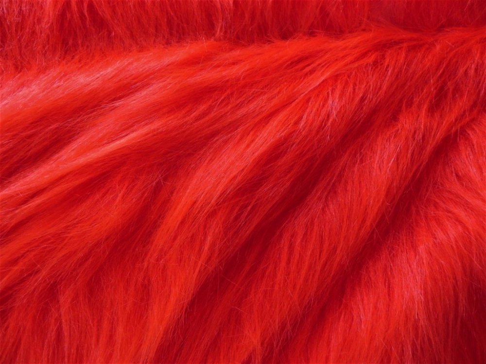 Nádherná kožešina s velmi dlouhým vlasem, 90 mm, v sytě červené barvě. Hustý materiál, na dotyk jemný a hřejivý. Praktická kožešina, která Vás potěší svoji barvou.