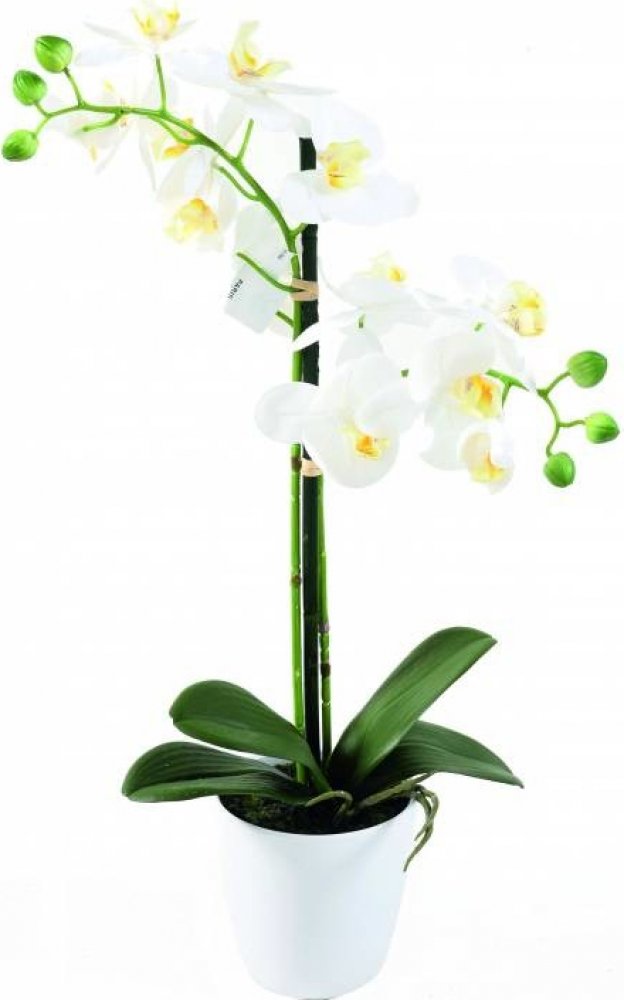 Umělá květina Orchidej bílá DELUXE, 55cm