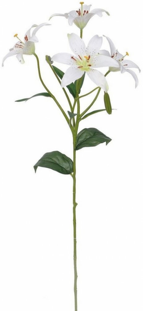 Umělá větvička bílé lilie se čtyřmi květy symbolizující čistotu, mír, důstojnost a nevinnost vnese do vašeho domova pocit klidu a krásu rozkvetlé květiny, bez ohledu na ročním období. Lilie královna mezi květinami ve věrohodném zpracování k nerozeznání od živé květiny, díky propracovaným detailům má své kouzlo jako samostatná větvička nebo lze doplnit dalšími zelenými stonky. Umělá květina nikdy ...