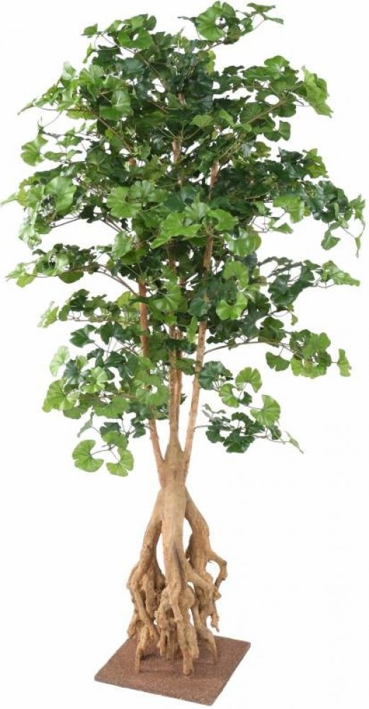 Dekorační umělý strom Jinan dvoulaločný (Ginkgo biloba) se zajímavým kořenem má celkovou výšku 180 cm vč. kotvící desky. Umělý jinan zdobí kromě kořene i listnatá koruna s průměrem 100cm. Zelené do detailu propracované listy jsou vyrobeny z materiálu Tergal. Kmen je z materiálu dřevo + fibre. První listy jsou ve výšce 68cm. Umělý strom ginkgo biloba se dodává ukotven na dřevené desce (rozměry 33x3...