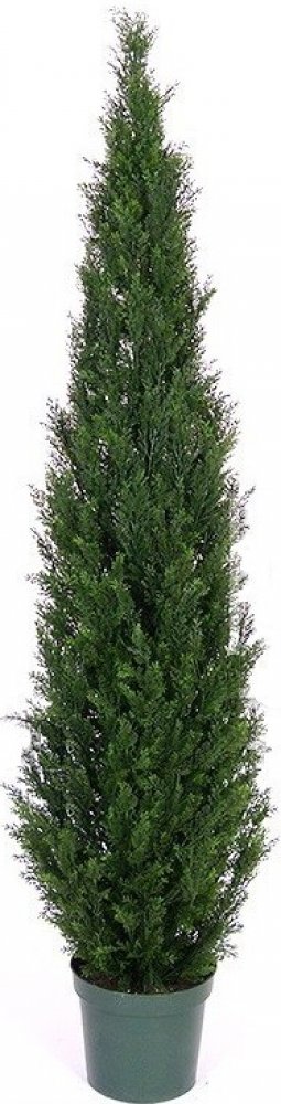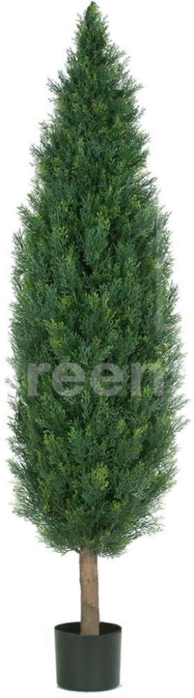 Umělý strom Cypřiš - thuja tmavé zelené barvy je vysoký 120cm včetně kotvícího květináče. Stonek, větvičky i lístky jsou dokonale propracované. Díky tomu vypadá tento umělý Cypřiš skutečně jako živý. Vhodné zejména jako elegantní dekorace pro vstupy. Umělý cypřiš je zacementován v kotvícím květináči. Realistické top provedení. Možno umístit i do exteriéru. Cypřiš se vyrábí v několika velikostech.