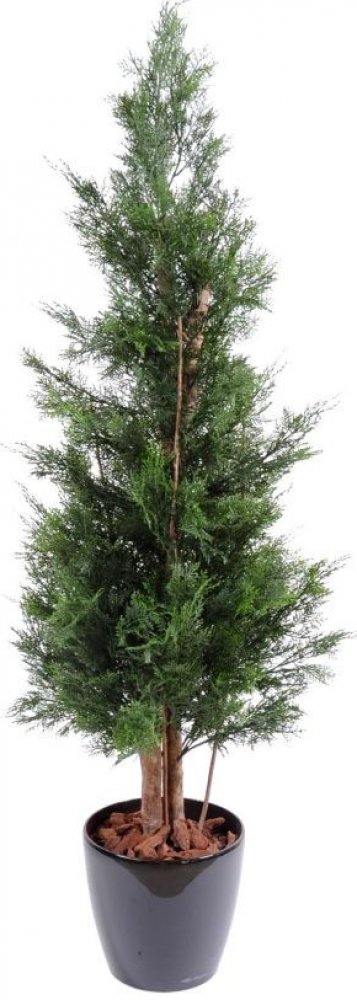 Umělý strom cypřiš v tmavě zelené má přírodní kmeny a je vysoký 150cm včetně plastového kotvícího květináče. Propracované listy v různých odstínech zelené pro dokonalou imitaci skutečného cypřiše. Průměr koruny cca 60cm - lze aranžovat +- několik centimetrů. Výška stromu včetně kotvícího květináče je cca 150cm. Rozměr květináče je 15cm výška, 17cm průměr. Dodáváno v kotvícím květináči. Hmotnost 7,...