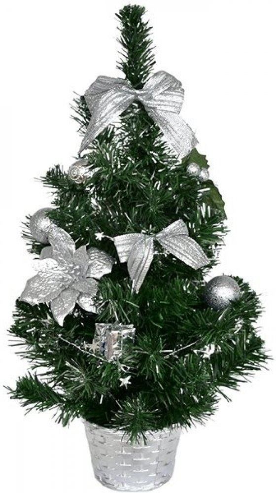 Klíčové vlastnosti produktu DOMMIO Vánoční stromek zdobený - stříbrný, 50 cm Vánoční stromek DOMMIO slouží k použití v interiéru Plochá struktura 2D jehličí Vánoční stromeček je doplněn ozdobami Stříbrná barva ozdobiček Má rozměry 50 × 25 cm (vך) Jeho hmotnost činí 0,4 kg