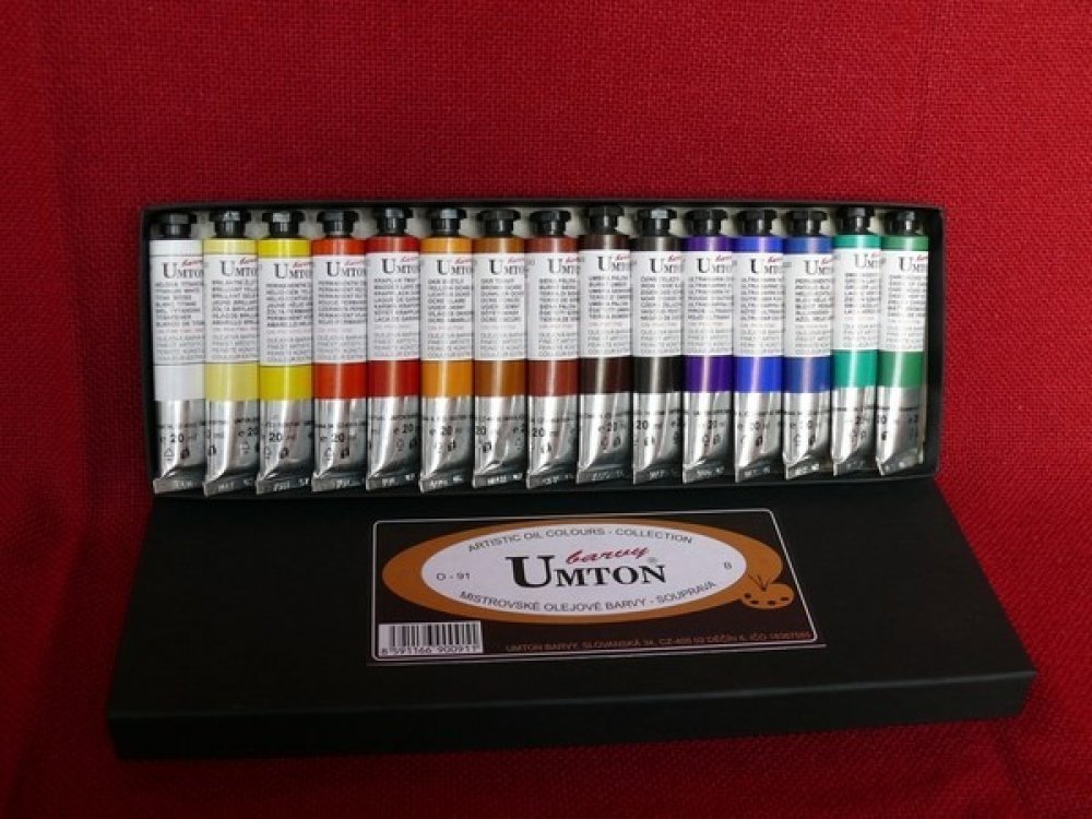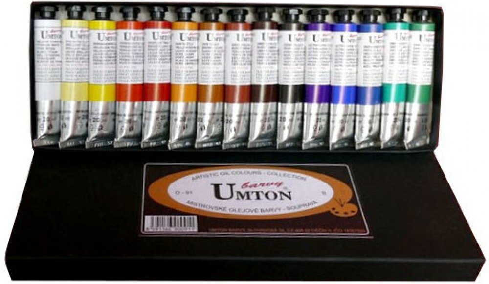 Uživatelé také hledali Umton Akvarelová barva č. 2010 běloba krycí 2,6ml Umton sada olejových barev v dřevěném kufříku 36x20 + 2x50ml media štětec Umton Akvarelová barva č. 2760 kobalt tyrkysový Umton damarový lak závěrečný 100 ml