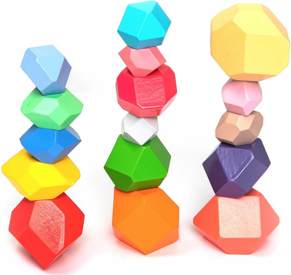 16 kusů barevných stohovatelných kamenů ze dřeva. Vyrobeno z masivu. Balanční kameny rozvíjí kreativitu, myšlení, paměť a zejména důležité motorické dovednosti dítěte (koordinace oko-ruka), dřevěná hračka pro kluky i holky vhodná již od 3 let