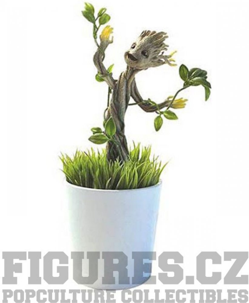 18 cm vysoká figurka Groota v květináči. V balení jsou také semínka a substrát pro zasazení 2 rostlin (tráva a vinná réva), které poté v květináči vytvoří originální a "živou" figurku! Groot navíc po nasvícení ve tmě svítí.