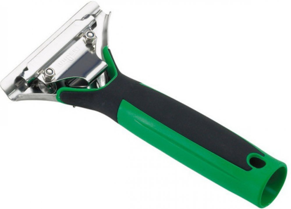 Držák, do kterého je možné vložit lištu s gumou (stěrku) nebo speciální žiletky pro odstranění ulpělých nečistot. Držák zajišťuje stěrku nebo žiletku systémem S = lištu drží 2 zuby. Prokluzování gumy v liště je pojištěno zářezy. Lištu uvolňujeme stlačením páky držadla. Produkt je zhotovený z vysoce odolného plastu v kombinaci s nerezem. Vhodný na tyče OptiLoc a TelePlus.