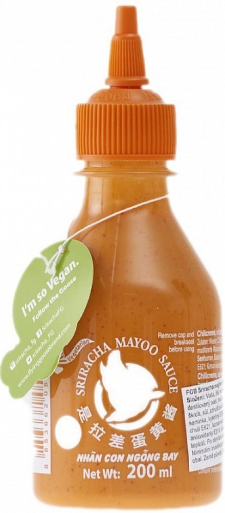 Omáčka Sriracha je světoznámá omáčka, jež je pojmenovaná podle thajského městečka Si Racha. Hlavní tóny této omáčky udává směs pálivých chilli papriček a česneku. Omáčka pochází přímo z Thajska a je právem považována za nejchutnější a nejkvalitnější. Její velmi ostrá chuť je ideální k červenému masu, drůbeži, zvěřině, slanině, kebabu, pečeným klobásám, kuřeti, rybám a mořským plodům, dim sum, nudlím, opečené rýži a jiným oblíbeným asijským i evropským jídlům. V této jemé variantě omáčky Sriracha naleznete kombinaci Chilli a Mojonézy. Složení: voda, chilli 20%, sojový olej, cukr, ocet, modifikovaný kukuřičný škrob, sůl, stabilizátor E415, česnek, hořčičná semínka, regulátor kyselosti E260, E330, zvýrazňovač chuti E621, konzervant E202, antioxidant E319 Alergie: neobsahuje Použití Omáčka Sriracha je vhodná na přípravu pálivých jídel a dochucování v průběhu servírování. Nutriční hodnoty (100g) energie 1170 kj tuky 19 g z toho mastné kyseliny 2,8 g sacharidy 26 g z toho cukry 17 g bílkoviny 1,2 g sůl 0,9 g