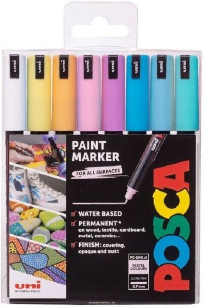 Oblíbené akrylové popisovače Posca jsou univerzálním pomocníkem jak pro umělecké profesionály, tak pro začátečníky či hobby malíře a tvořivé duše. Jedinečný akrylový inkoust matného vzhledu, v nich obsažený, je bohatý na pigmenty, má krásné syté barvy a je stálobarevný a voděodolný. Posca jsou navrženy pro nadšené kreativce a výtvarníky na kresbu, malbu, úpravu, tvoření a dekoraci všech možných povrchů - od papíru, plátna, přes kámen, keramiku, plast až po kov či sklo, aj.. Jsou rozmyvatelné vodou, po zaschnutí jsou voděoděodolné. Barvy jsou po zaschnutí matné a stálobarevné. Vyrobeno v Japonsku.