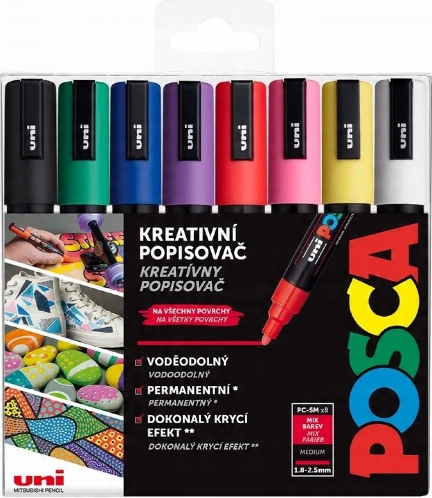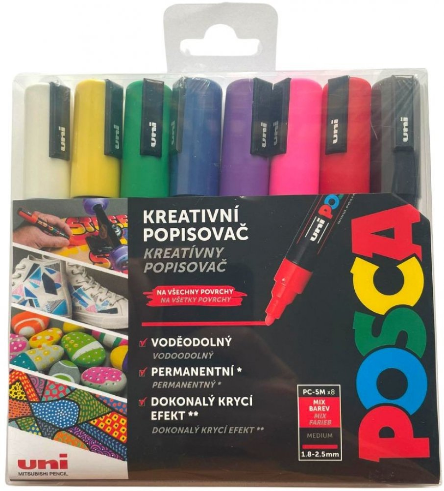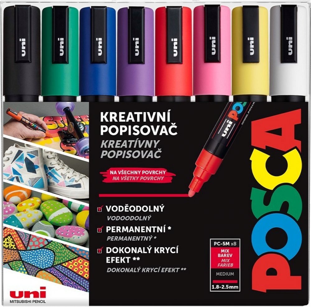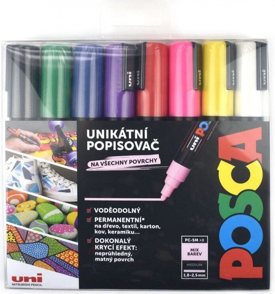 Uni Posca PC-5M 1,8 sada 8 ks mix základních barev