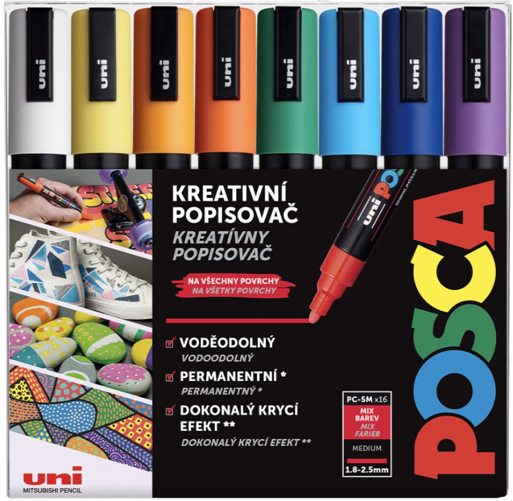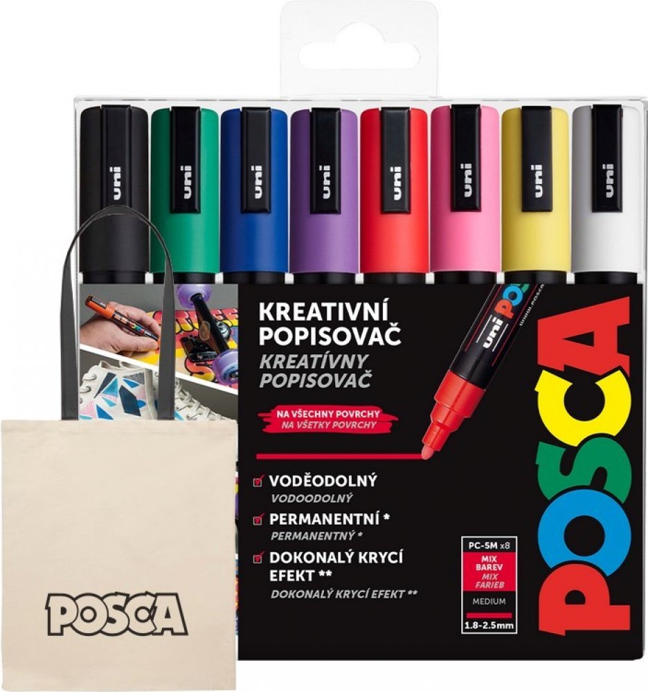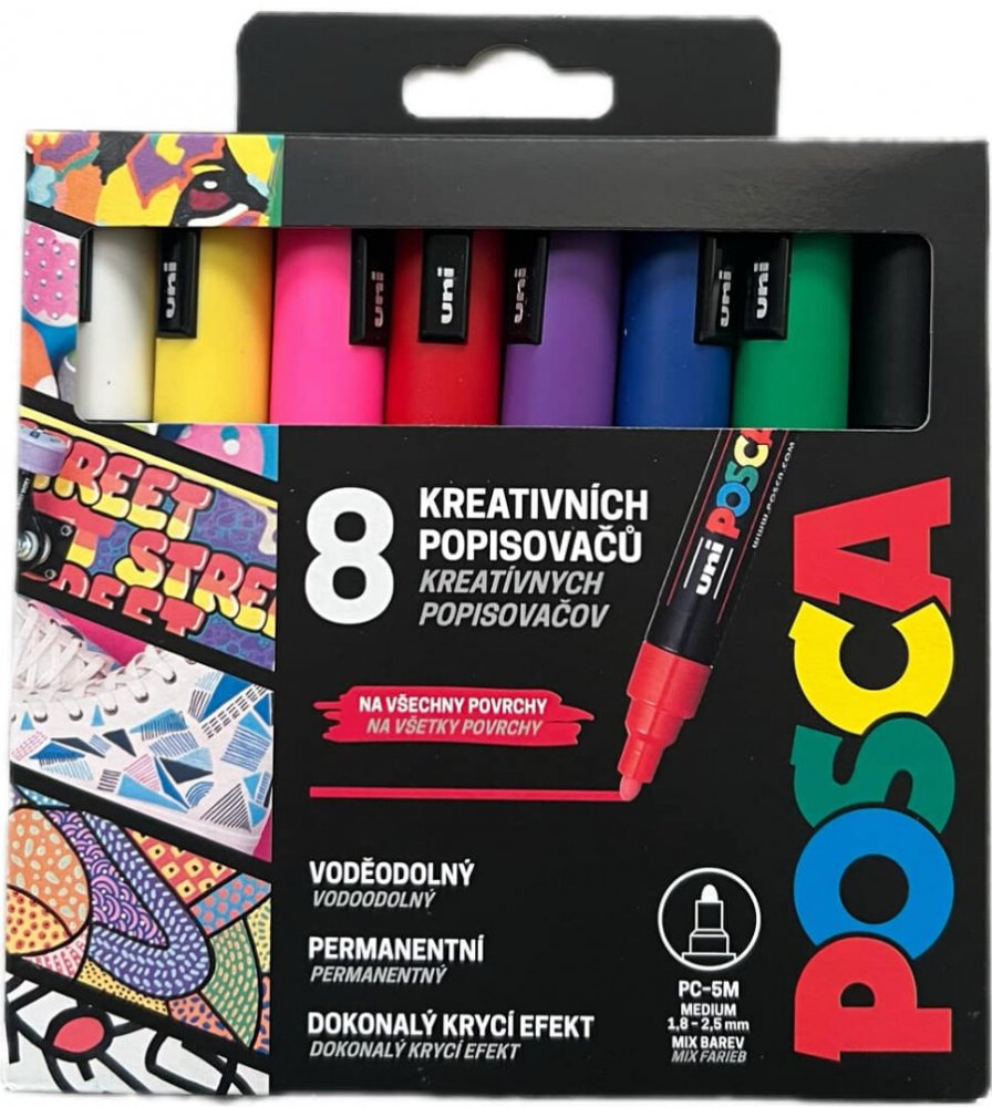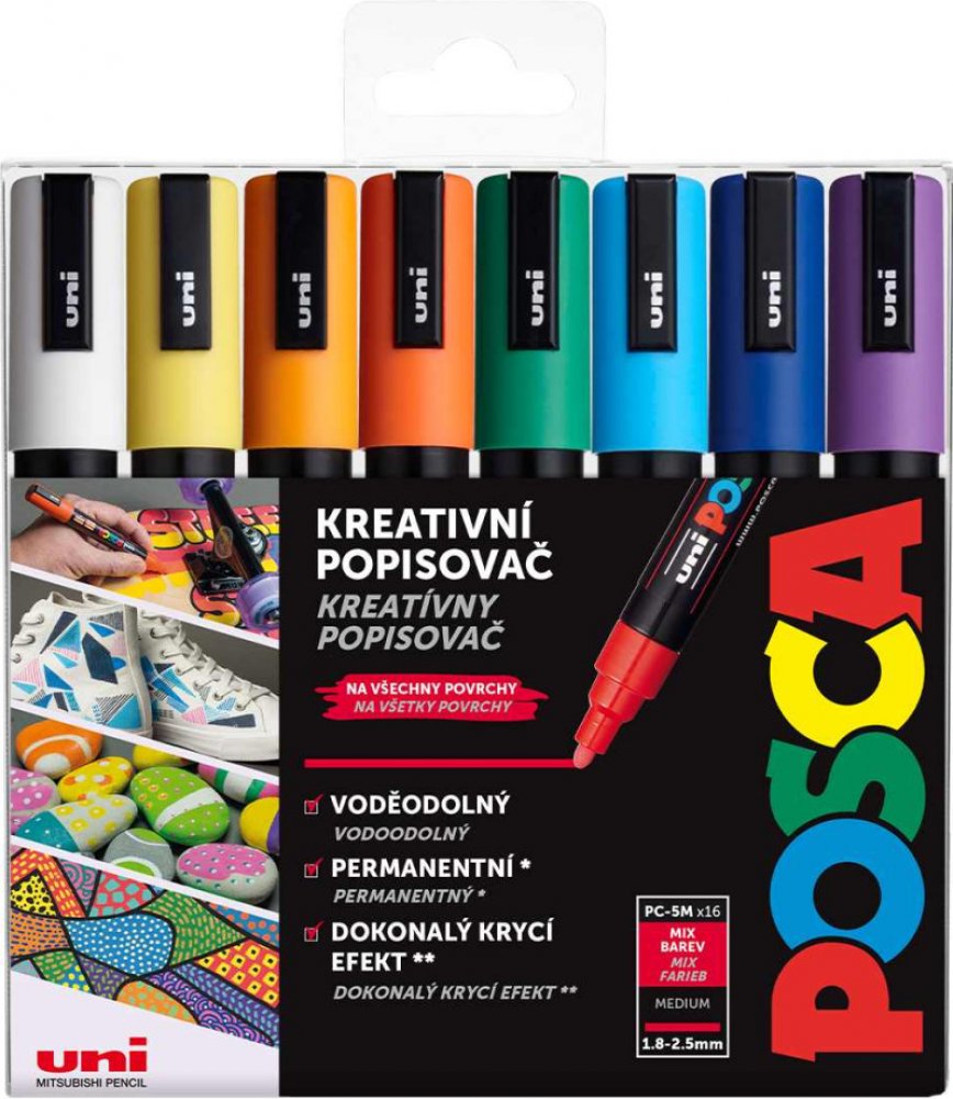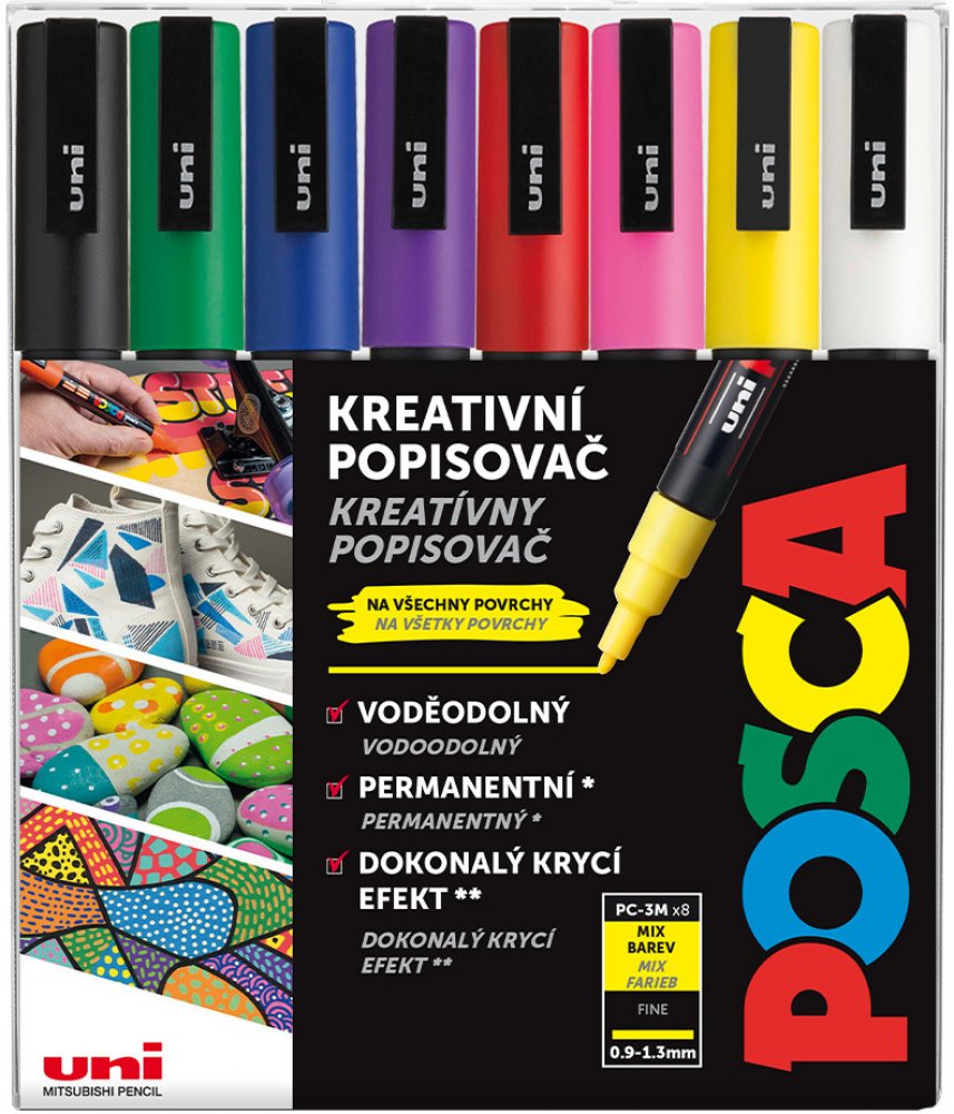 Uni Posca PC-5M 1,8 sada 8 ks mix základních barev