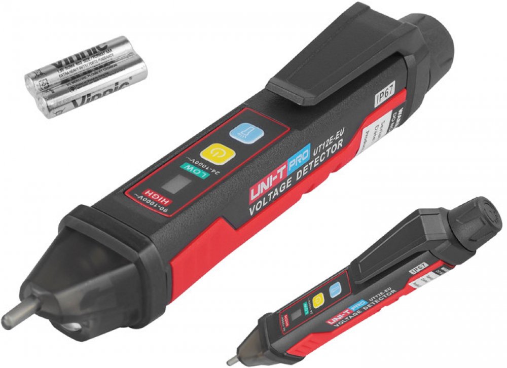 UT12E-EU podporuje široký rozsah napětí střídavého proudu (AC) od 24 V do 1000 V, včetně dvou různých stupnic: nízké (24~1000 V) a vysoké (90~1000 V). Vestavěný vibrační modul a zvuková a LED signalizace umožňují rychlé a intuitivní zjišťování napětí, zajišťující další vrstvu bezpečnosti při práci.