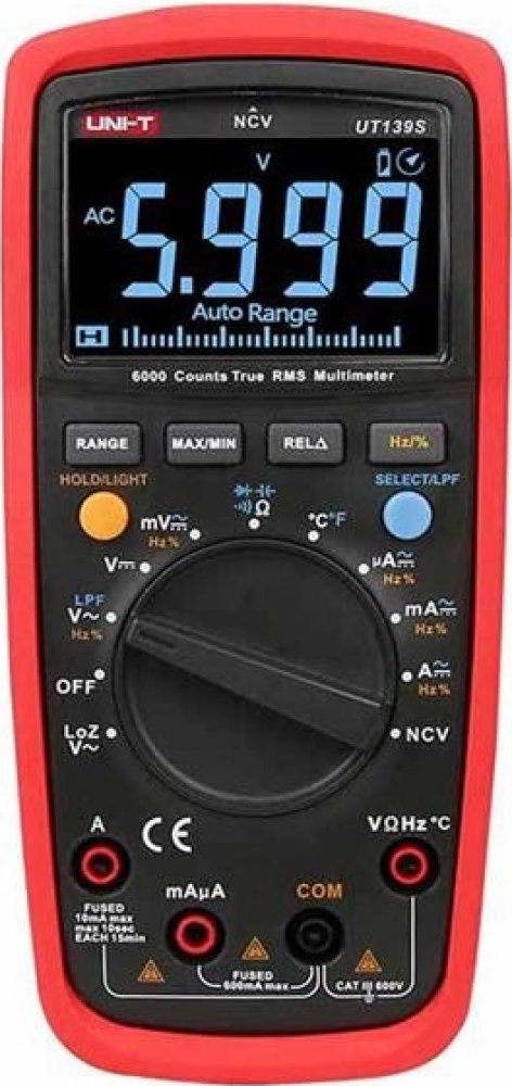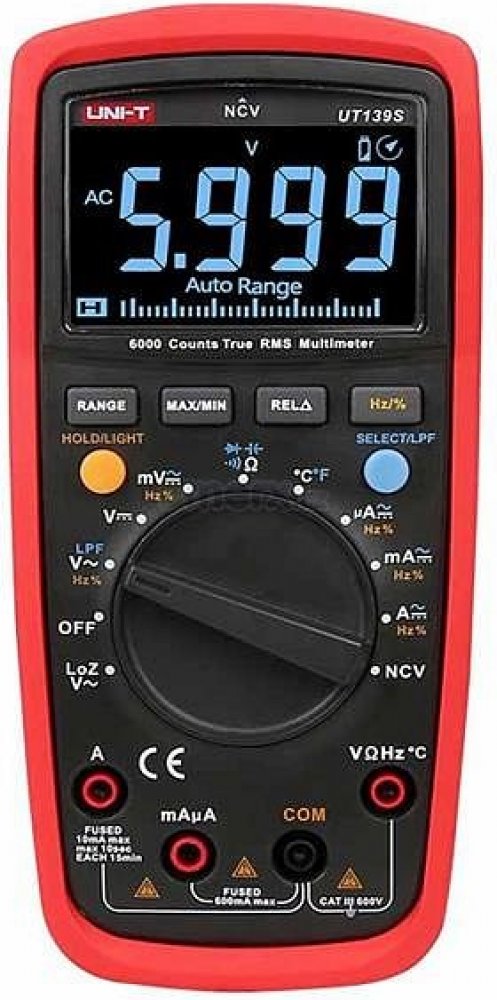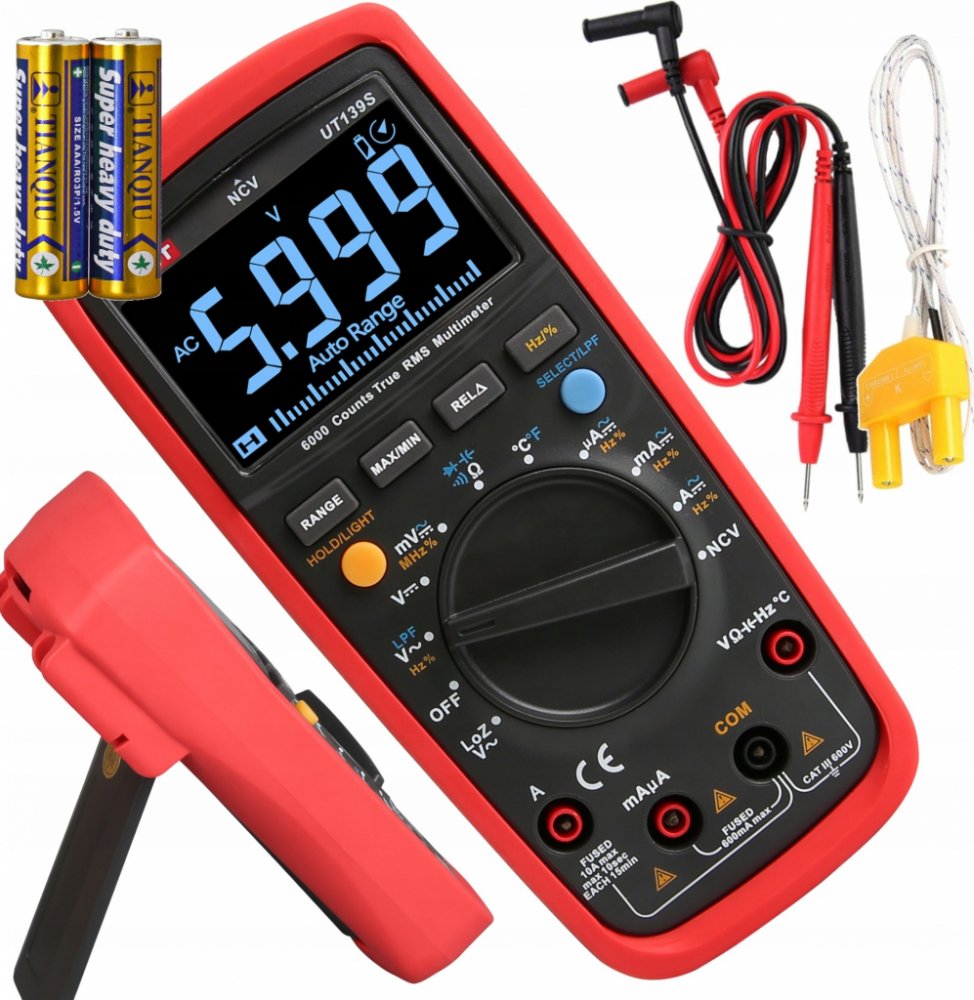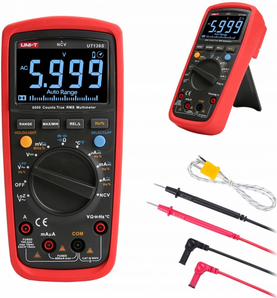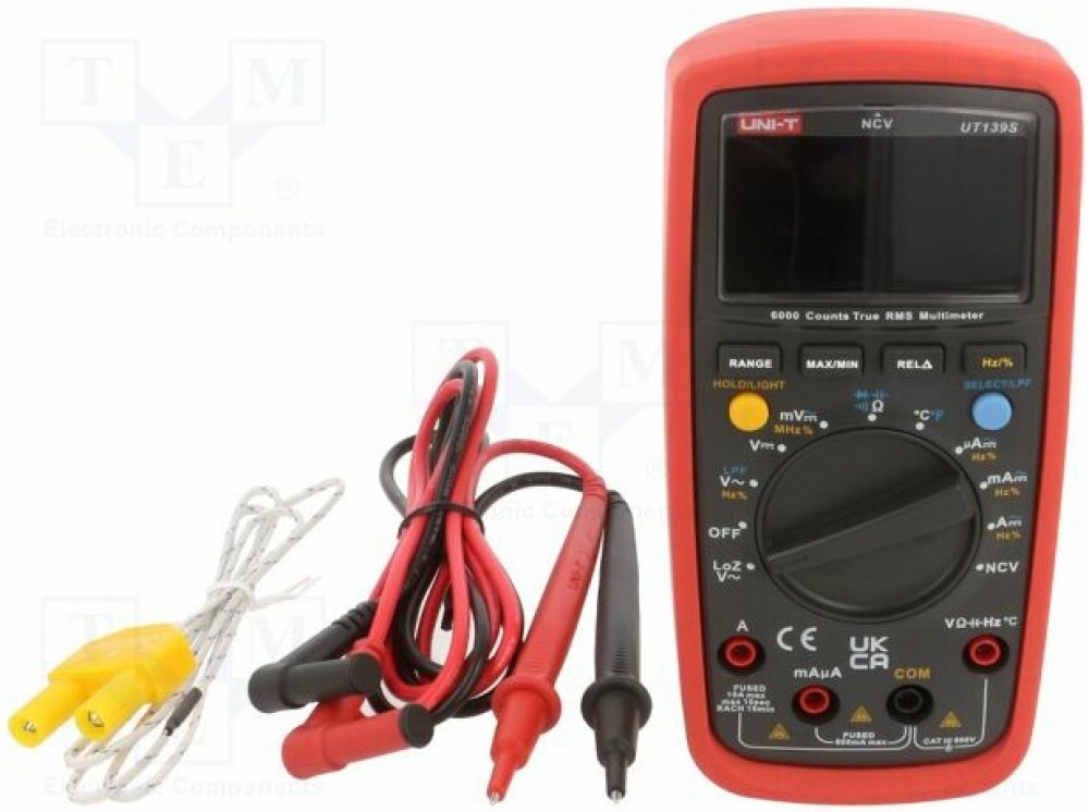 UT139S je nový profesionální multimetr s klasifikací True RMS a ochranou CAT III 600V, navržen pro potřeby elektrikářů s černým EBTN displejem. Přístroj splňuje certifikaci cETLus a obsahuje řadu nadstandardních funkcí, jakými jsou např. měření napětí s nízkou impedancí (LoZ), bezkontaktní měření napětí (NCV), měření kapacity kondenzátorů, nebo také měření teploty.