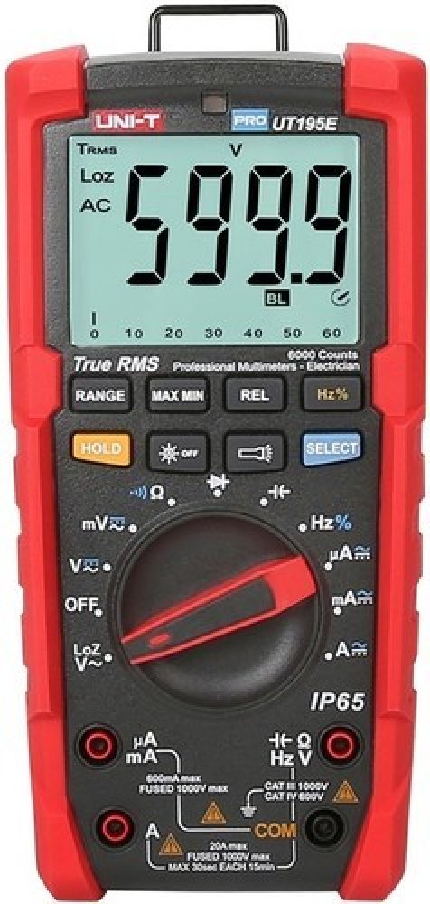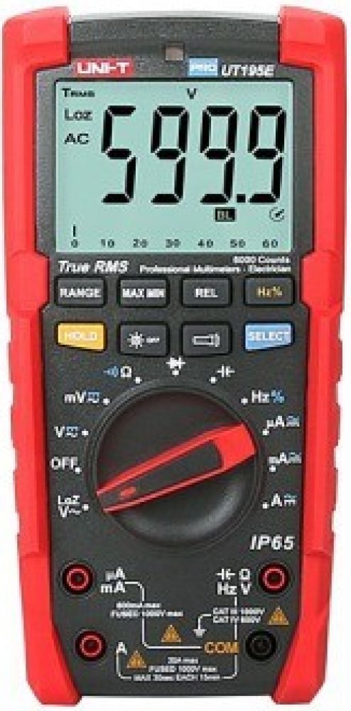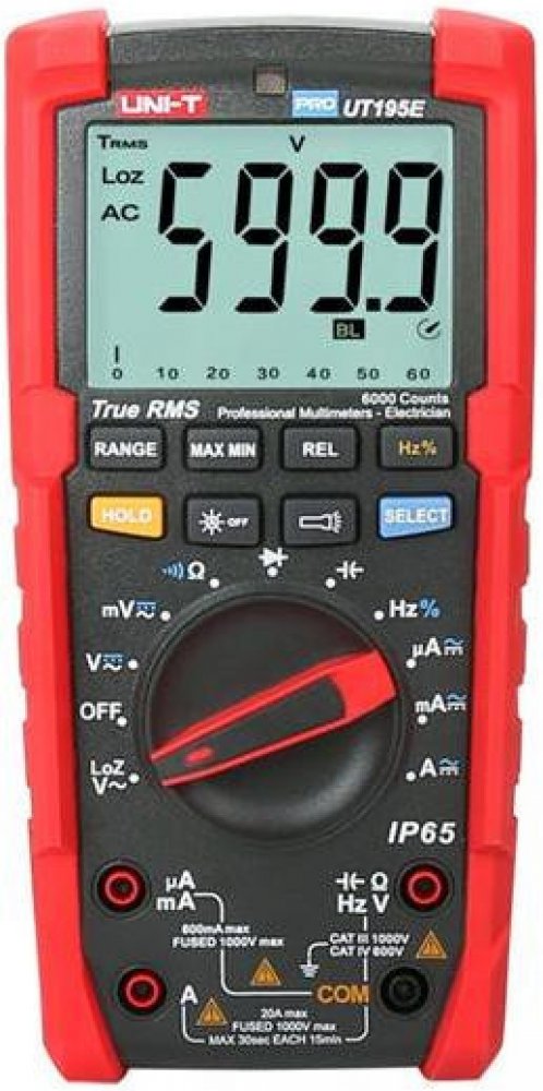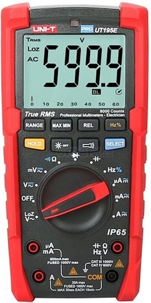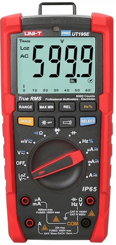 Multimetr UT195E je velmi odolný přístroj určený pro elektrikáře, opraváře, údržbáře a servisní techniky. Je vhodný pro každodenní použití v i těch nejdrsnějších podmínkách. Přístroj vydrží pád ze 2m a díky stupni krytí IP65 poskytuje vynikajicí ochranu vůči vodě a prachu. Díky TrueRMS můžete přesně měřit i nesymentrické střídavé napětí a proud.
