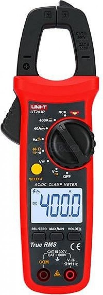 Digitální klešťový měřič UT203R slouží pro měření střídavých a stejnosměrných napětí do 600V, AC a DC proudů do 600A a frekvece 10Hz až 60kHz u napětí nn do 600V a 10Hz až 10MHz u napětí mn. Na všech rozsazích má ochranu před větším napětím než 600V a zvukový a optický alarm. Čtyřmístný více segmentový displej o rozměru 37 x 25 mm se zadním podsvícením a rychlou obnovovací frekvencí (3krát/s) . Ro...