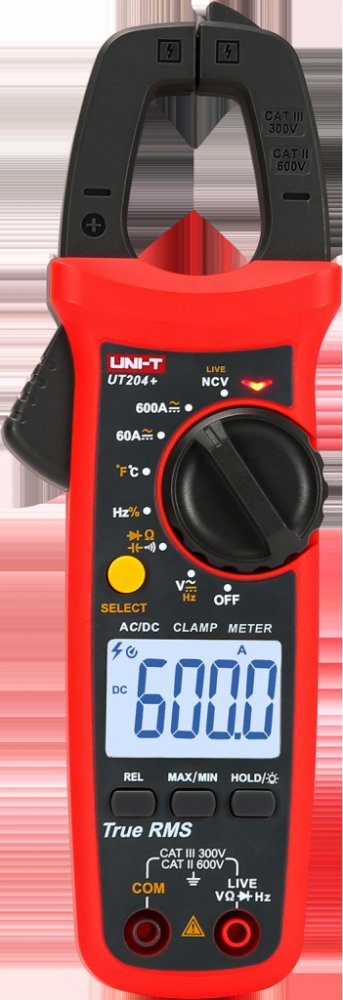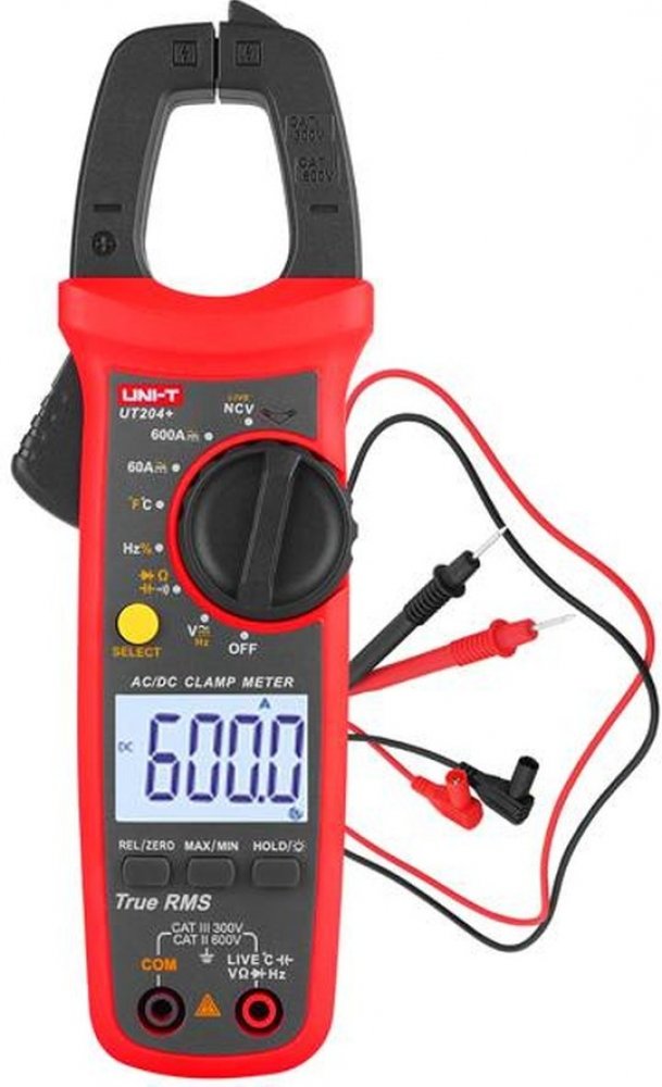 Nabízený klešťový měřič UT204 + umožňuje provádět nejčastěji měřené elektrické parametry: měření proudu DC / AC pomocí kleští bez přerušení elektrického obvodu a další parametry pomocí vodičů měření napětí DC / AC, měření frekvence, měření teploty, kontinuita elektrického obvodu měření, měření odporu, měření kapacity kondenzátoru.