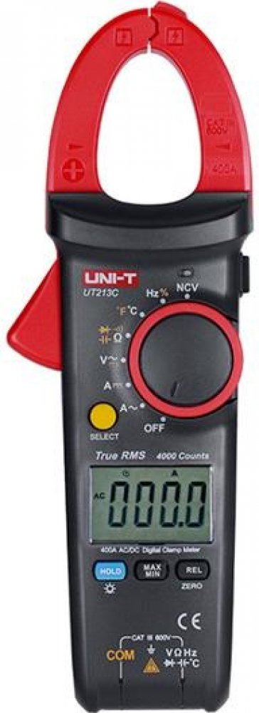 UNI-T UT213C je kompaktní a spolehlivý digitální TRMS klešťový multimetr, který nabízí vynikající poměr cena/výkon. Umožňuje měření střídavého i stejnosměrného napětí a proudu, frekvence, kapacity a teploty. Díky funkci True RMS, podsvícenému LCD displeji a bezkontaktnímu měření napětí (NCV) je ideální pro profesionální elektrikáře i domácí kutily.