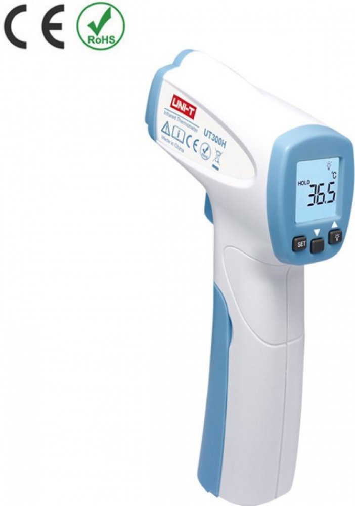 Bezkontaktní infračervený teploměr UT300H od UNI-T charakterizovaný rychlým a přesným měřením lidské teploty.Výsledek lze číst pomocí podsvíceného a čitelného LCD displeje, který také informuje o vybití baterie. Je možné měřit stupně Celsia i Fahrenheita.
