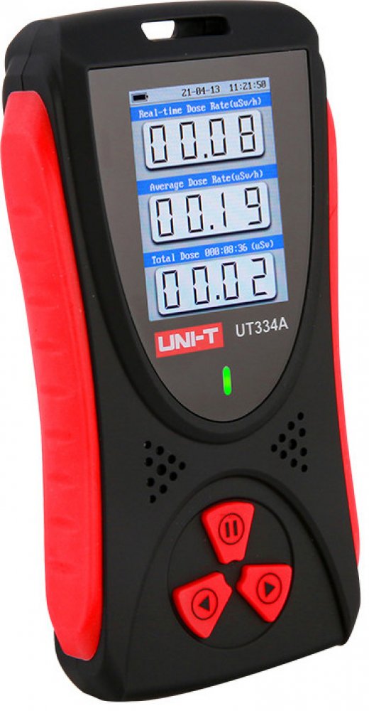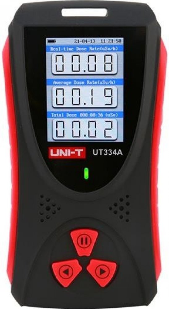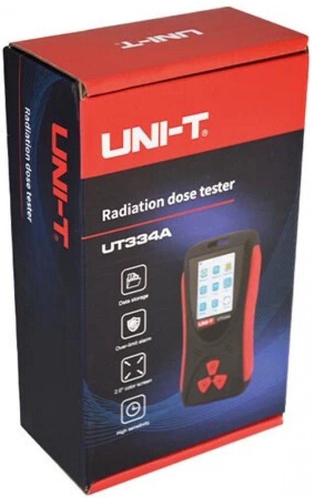 Geigerův čítač pro kontrolu radioaktivity UT334A je kompaktní detektor, který se používá ke sledování beta(β), gama(γ) a rentgenového záření. Přístroj je vysoce citlivý a přesný. Je vybaven vysoce výkonným mikroprocesorem a barevnou obrazovkou TFT 2.0, díky čemuž je obsluha pohodlná. Přístroj je vybaven zvukovou a vizuální signalizací. Prahové hodnoty signalizace lze nastavit, při dosažení prahových hodnot měřič spustí alarm. Hlavní specifikace odpovídají mezinárodním normám.