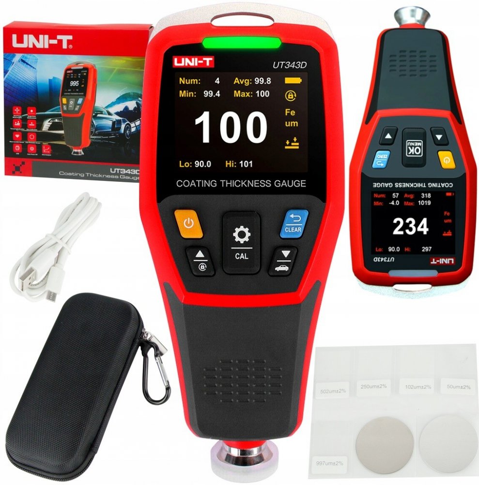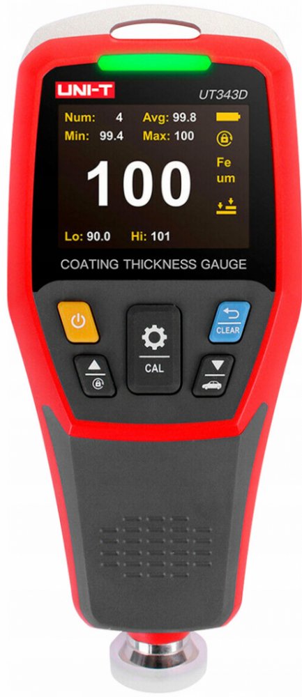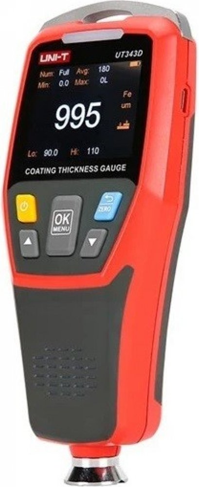 UT343D je vysoce přesný měřič tloušťky laku, který dokáže měřit tloušťku laku na železných i neželezných kovech. Toto zařízení se vyznačuje vysokou přesností, nedestruktivním měřením a funkcí jednobodového i vícebodového průměrovacího algoritmu a rychlého měření. Je široce používán při výrobě a zpracování kovů, letectví, námořní mechanice, železniční dopravě, vědeckém výzkumu, kontrole kvality a dalších průmyslových odvětvích.
