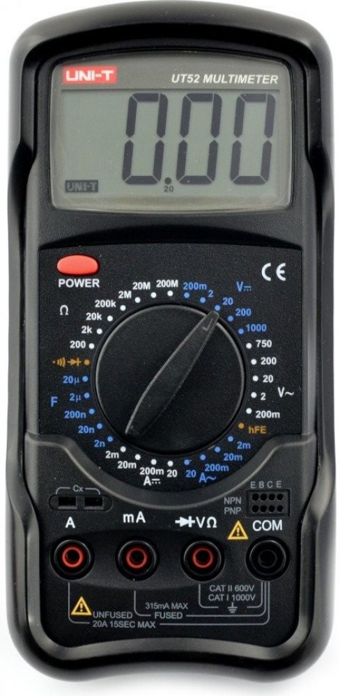 Velký čitelný displej a připojená šňůrka usnadňují používání multimetru.