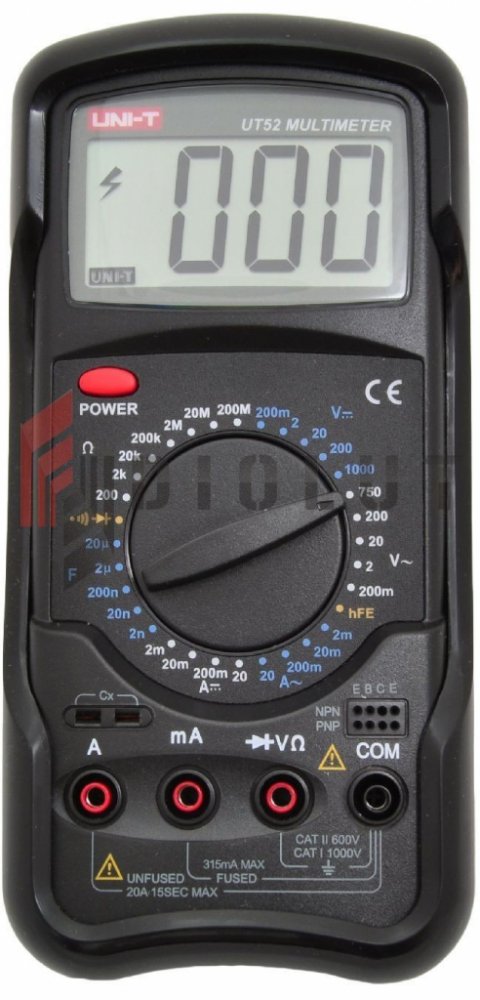 Multimetr umožňuje měřit střídavé a stejnosměrné napětí, stejnosměrný a střídavý průtok, odpor a kapacitu.